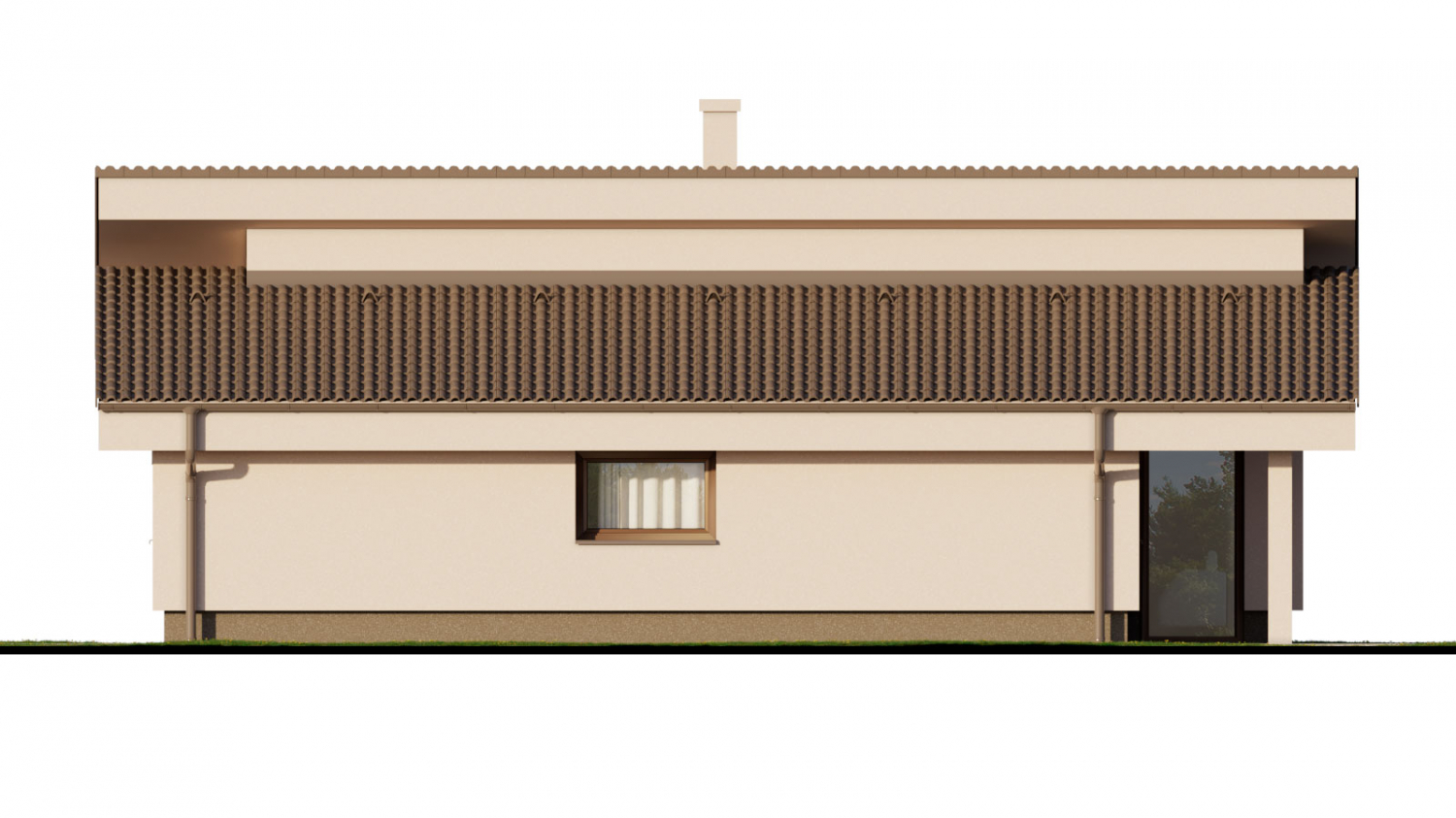 BUNGALOW 135 is a house in the smaller size category, for medium width plots. Suitable for single-storey surrounding buildings. The internal space in this house will meet the housing needs for a 3-4 member family. The living room and kitchen form a single large space. The barrier-free design is appropriate for persons with reduced mobility. Suitable for flat and slightly sloped terrain. The house has a fireplace which provides heat and serves an irreplaceable aesthetic function. Thanks to the room on the ground floor, you can avoid the need to take the stairs. Suitable for row construction thanks to its shape and layout.