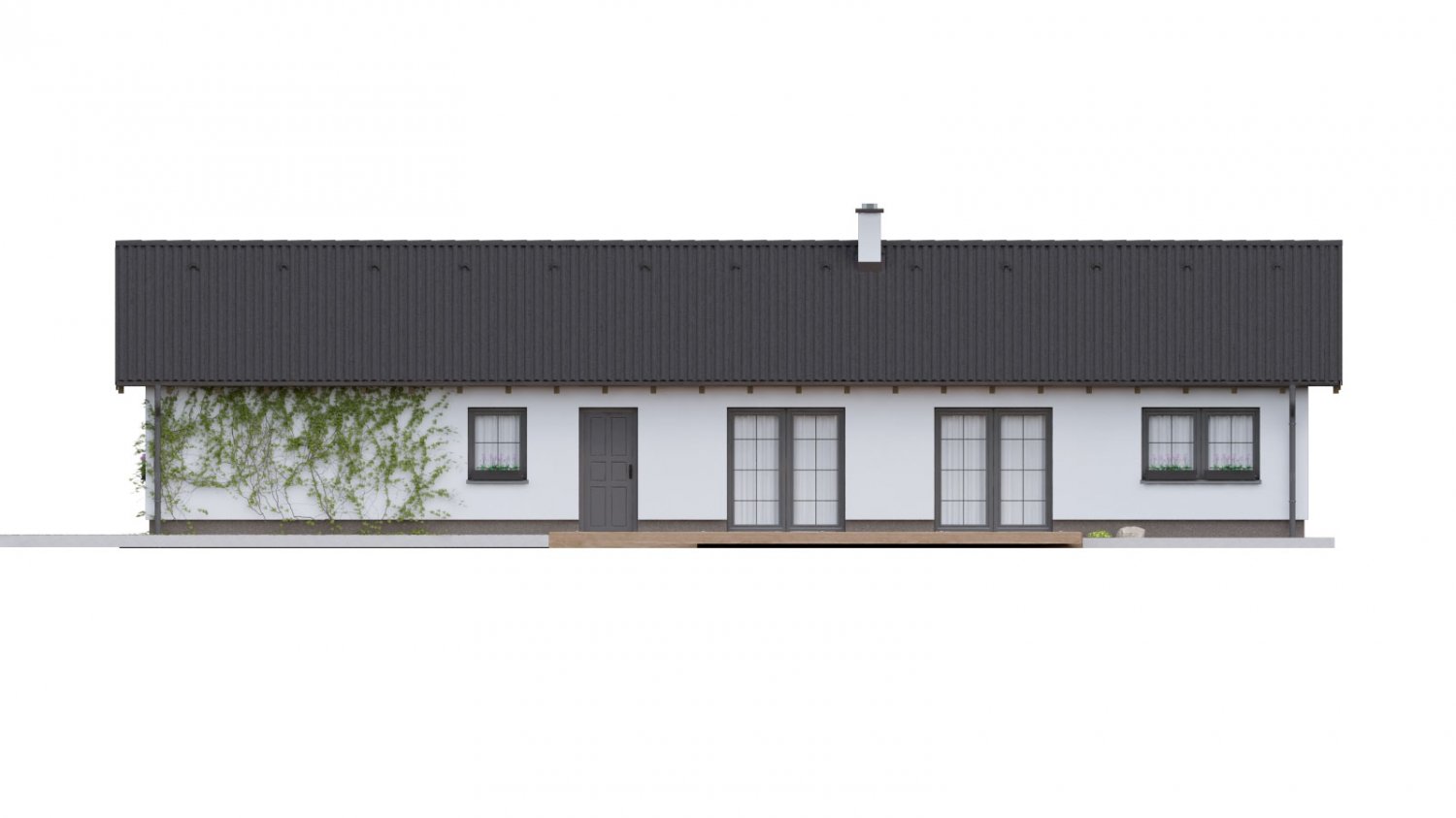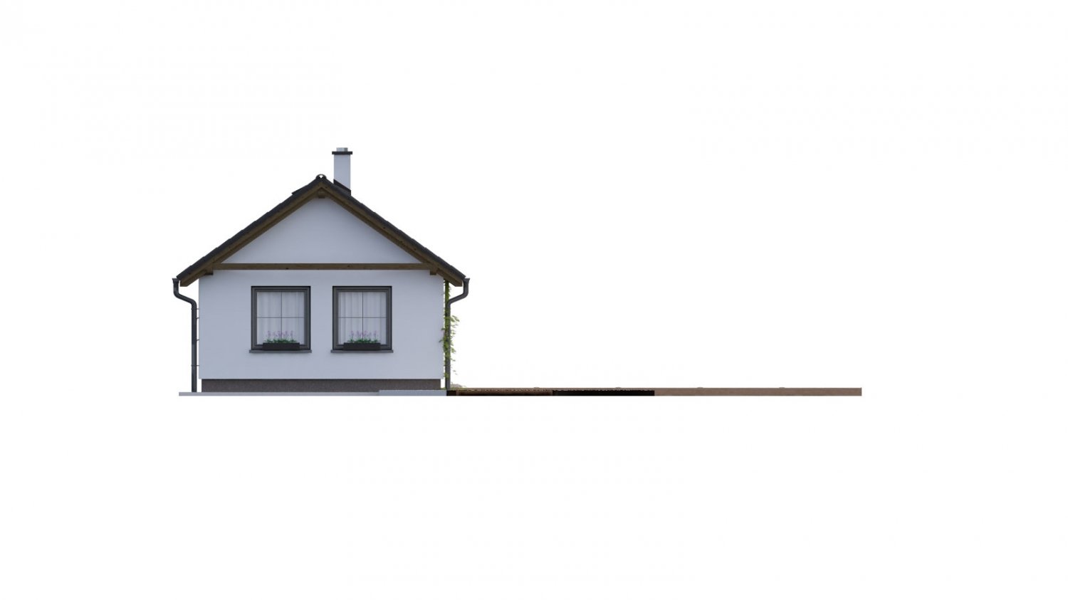 Catalogue house with fireplace Bungalow 136 belongs to the smaller size category. This house on a narrow lot is suitable for implementation on a flat or gently sloping lot. The rural style in which it is designed stands out most beautifully in the countryside in traditional surrounding development. A parking space can be created next to the house.