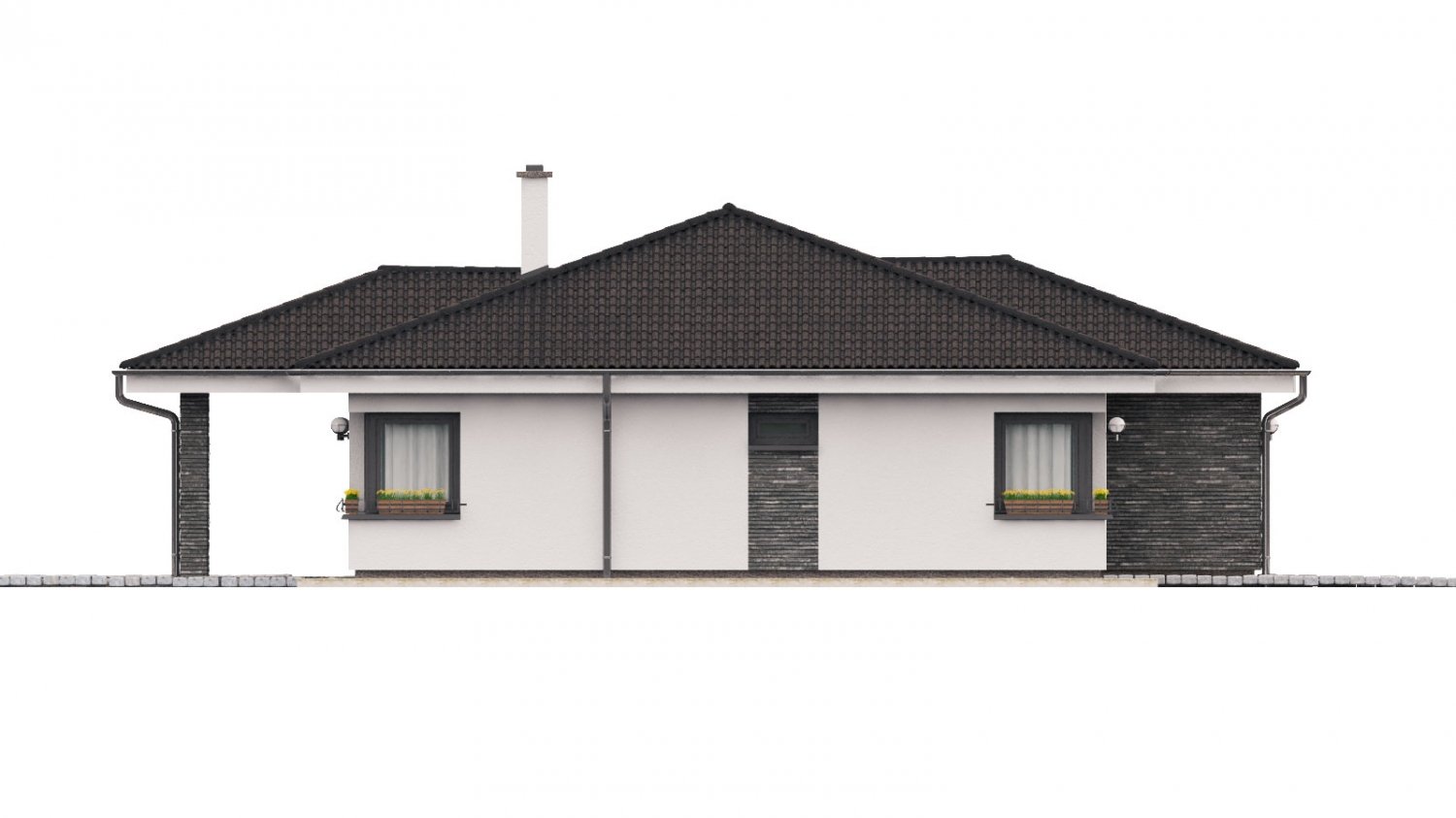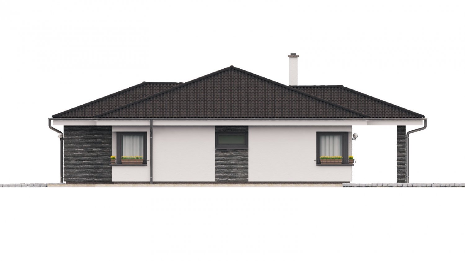 BUNGALOW 137 is a house in the medium size category, for wider plots. Suitable for single-storey surrounding buildings. The internal space in this house will meet the housing needs for a 4-5 member family. The living room and kitchen form a single large space. The barrier-free design is appropriate for persons with reduced mobility. Suitable for flat and slightly sloped terrain. The house has a fireplace which provides heat and serves an irreplaceable aesthetic function. The house includes a spacious garage for two cars. Thanks to the room on the ground floor, you can avoid the need to take the stairs.