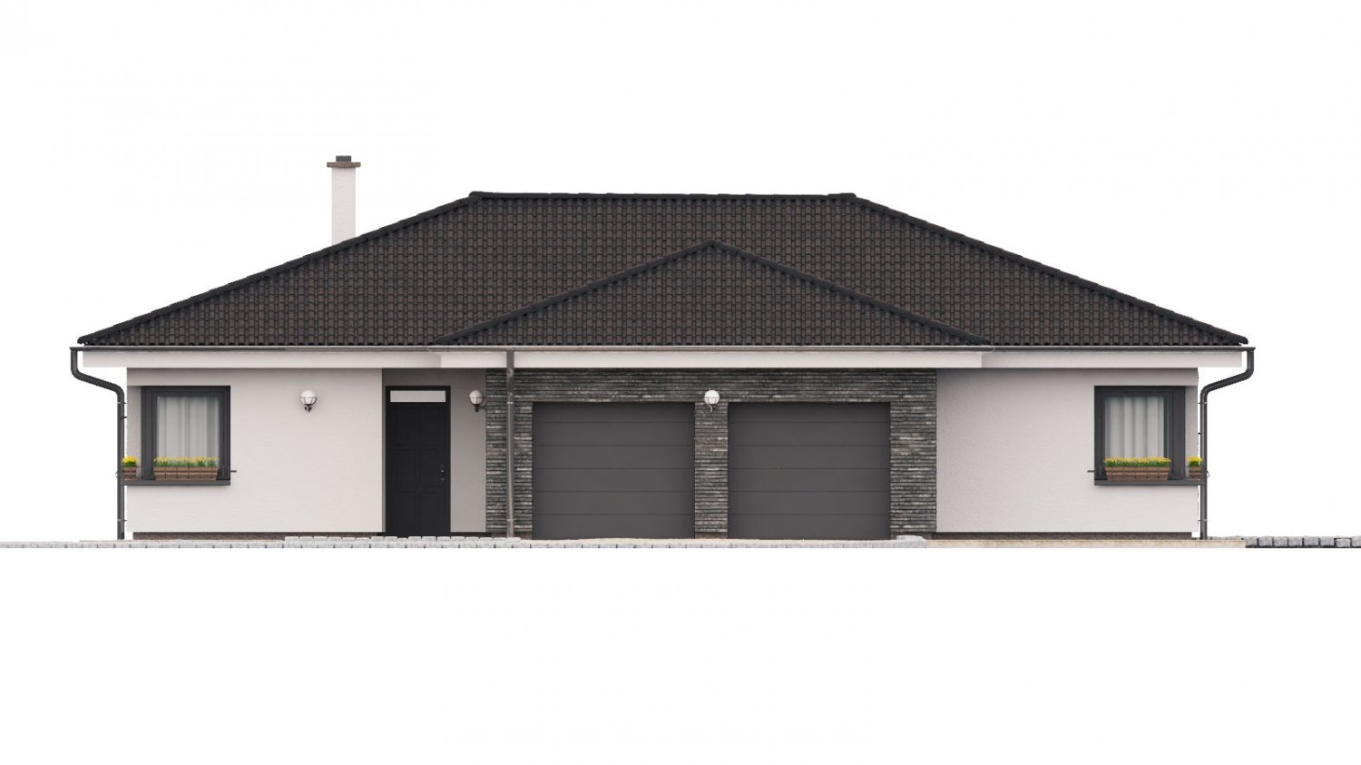 Nice architecture that stands out from the lower surrounding houses, two-car garage and covered terrace. These are all advantages of the catalogue project of the house. Bungalow 137 brings. This 5-bedroom detached house on a wide plot will also provide you with plenty of storage space. Those who like to enjoy the proximity of green areas will be attracted by the large glazed areas, through which daylight also flows into the interior.