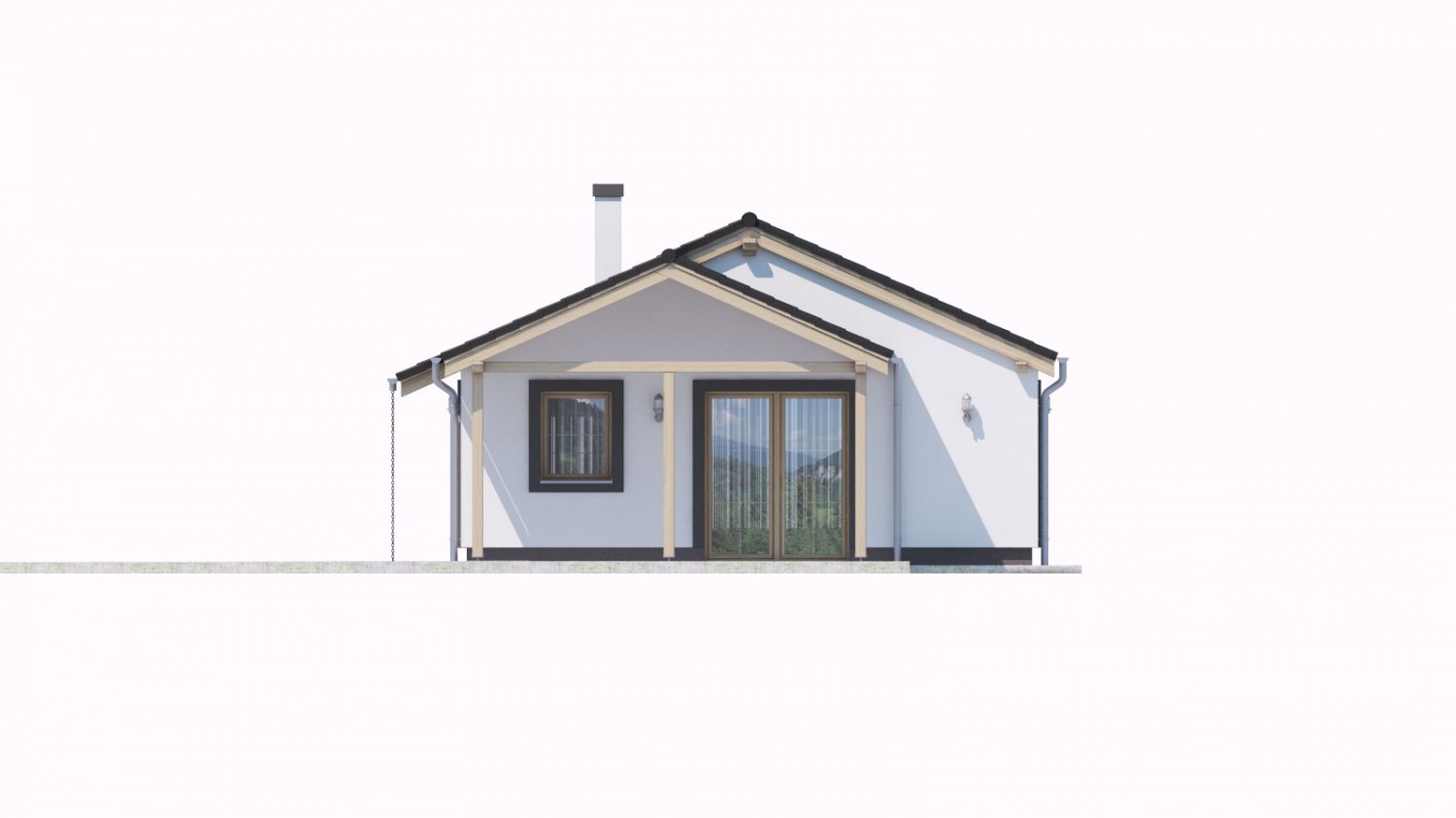 The 4-room bungalow Bungalow 139 can be built on flat or gently sloping terrain. This project of a house for a small plot fits nicely in a neighbourhood of lower houses. The family house Bungalow 139 is a smaller-sized category house without a garage. It fulfils the living requirements of 4 people. The parking can be solved next to the house. If you choose this house project, you will be satisfied with its simple realisation without the ceiling construction.