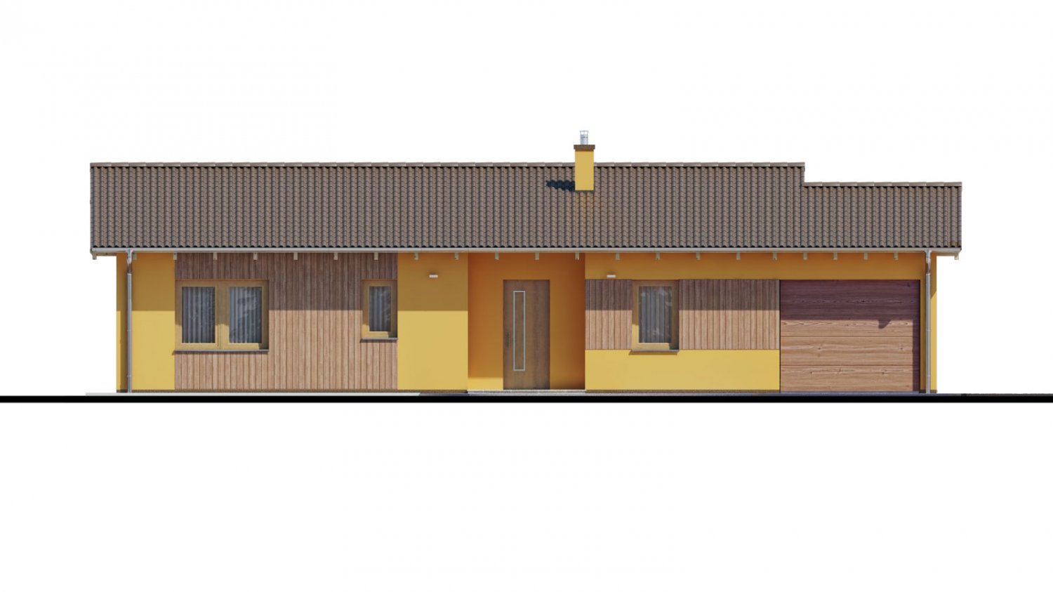 BUNGALOW 148 is a house in the medium size category, for medium width plots. Suitable for single-storey surrounding buildings. The internal space in this house will meet the housing needs for a 4 member family. The living room and kitchen form a single large space. The barrier-free design is appropriate for persons with reduced mobility. Suitable for flat and slightly sloped terrain. The house has a fireplace which provides heat and serves an irreplaceable aesthetic function. The house includes a spacious garage. Thanks to the room on the ground floor, you can avoid the need to take the stairs. Suitable for row construction thanks to its shape and layout.