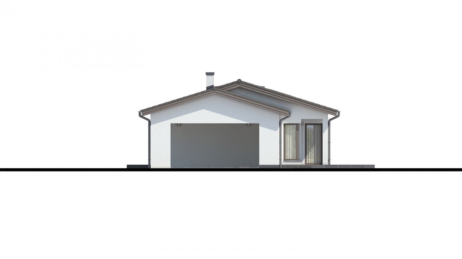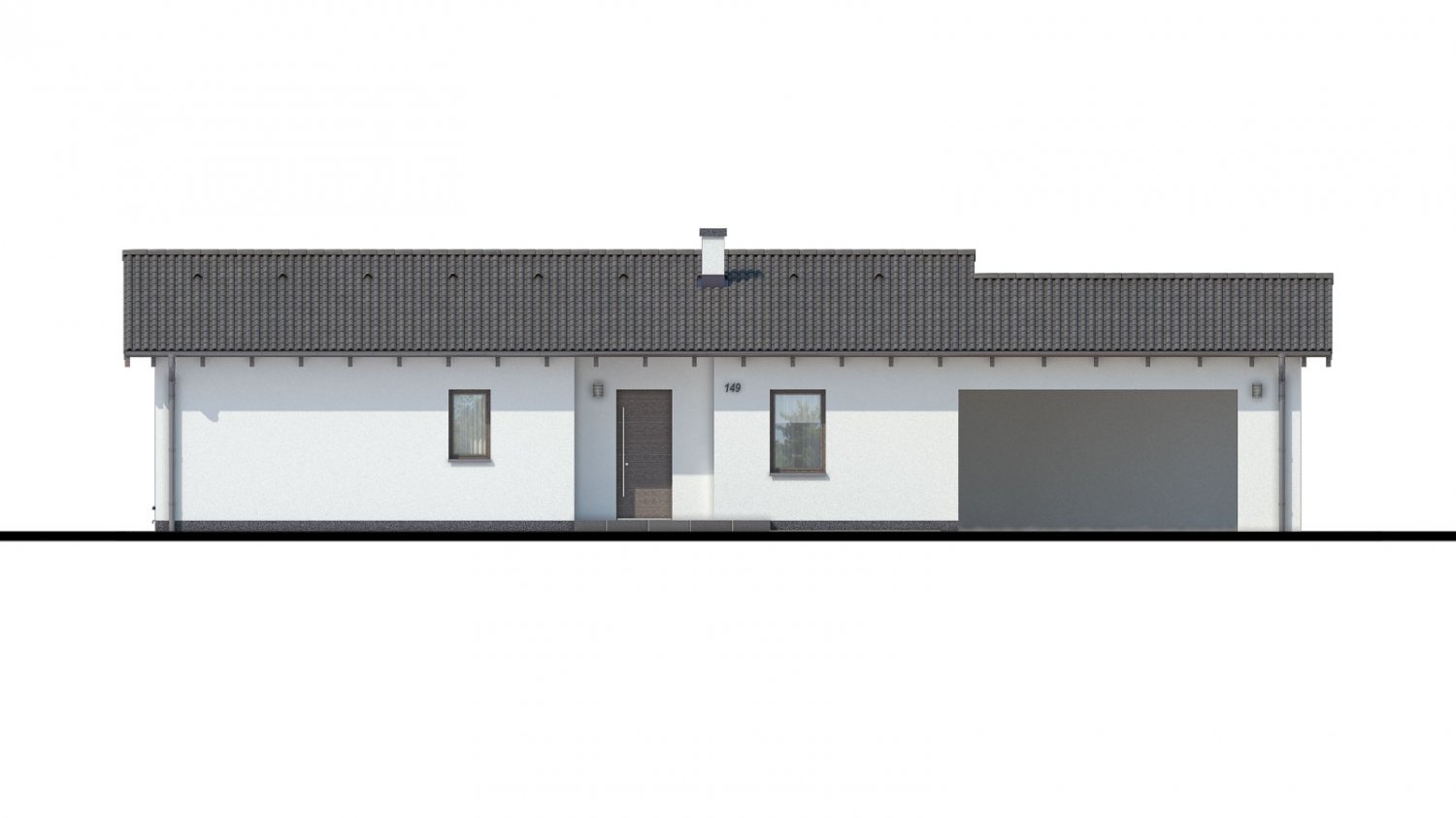 BUNGALOW 149 is a house in the medium size category, for medium width plots. Suitable for single-storey surrounding buildings. The internal space in this house will meet the housing needs for a 4 member family. The living room and kitchen form a single large space. The barrier-free design is appropriate for persons with reduced mobility. Suitable for flat and slightly sloped terrain. The house has a fireplace which provides heat and serves an irreplaceable aesthetic function. The house includes a spacious garage for two cars. Thanks to the room on the ground floor, you can avoid the need to take the stairs.