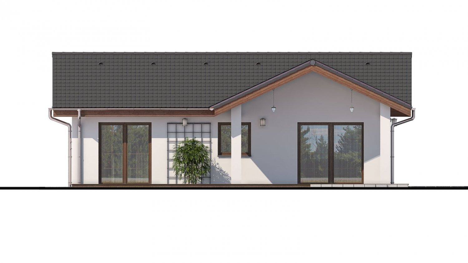 The 3-room single-storey house with a covered terrace Bungalow 160 is a small size category house. The layout fulfils the living requirements of a family of 4. As well as other house projects from the Prodom Company, this house project offers enough daylight in the interior. The lighting of the rooms by windows is designed in a way that the daylight enters the interior from different angles.