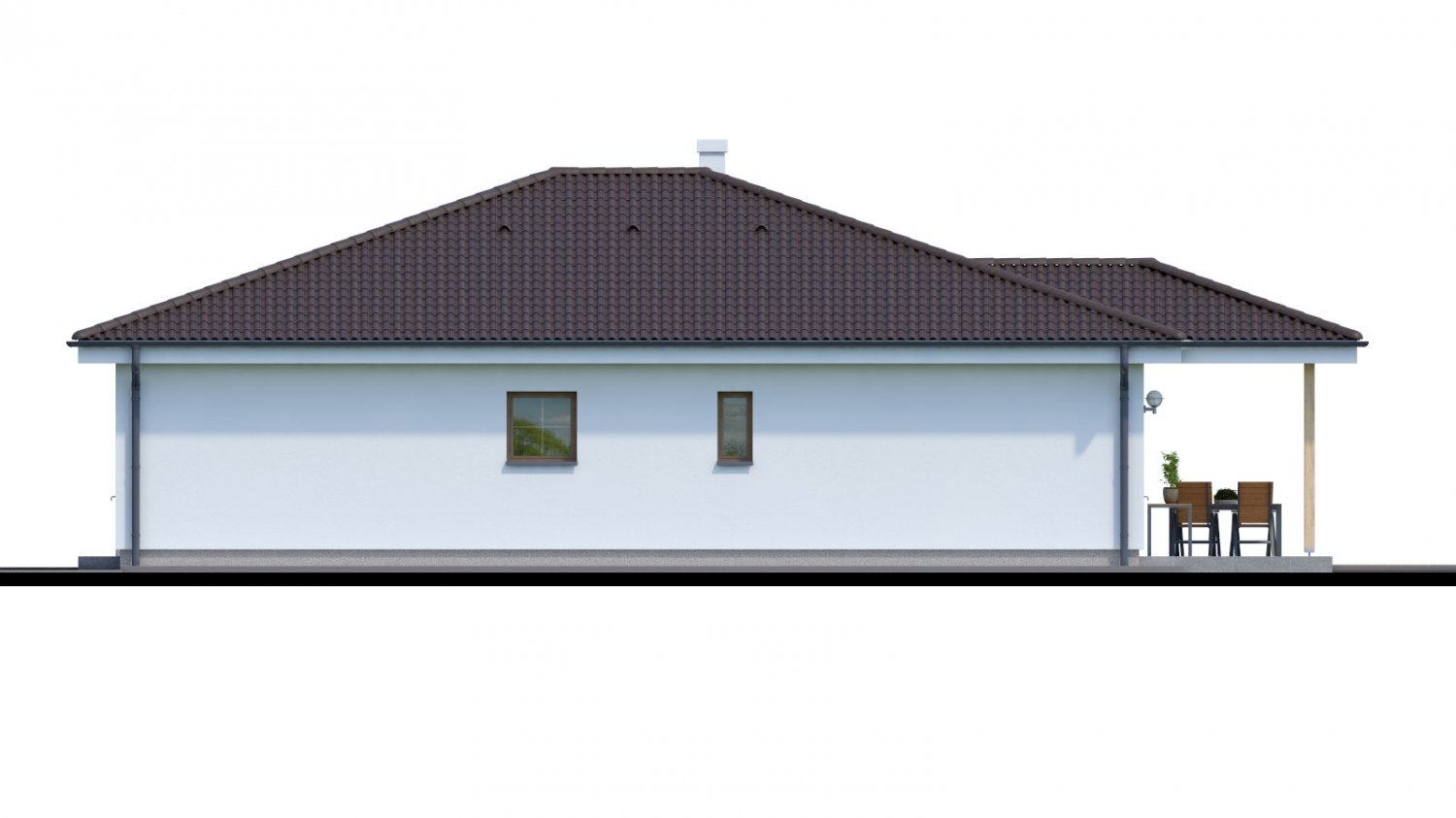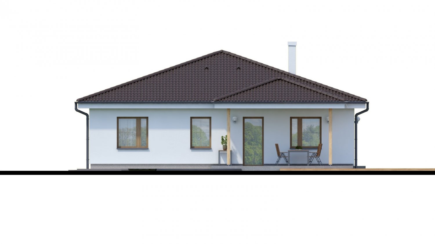 5 room house with a hipped roof Bungalow 167 will meet the demands of anyone looking for a house with spacious rooms. This house with a covered terrace will also satisfy your storage needs also. Think about the interior light through the windows. The catalogue project of the house Bungalow 167 does not forget about the comfort of relaxation, which will be multiplied by the fireplace in the living room.