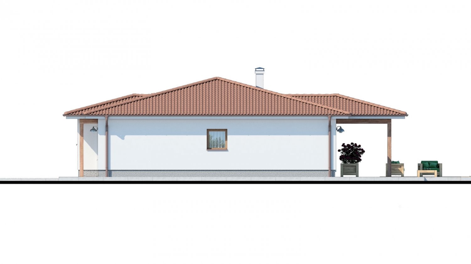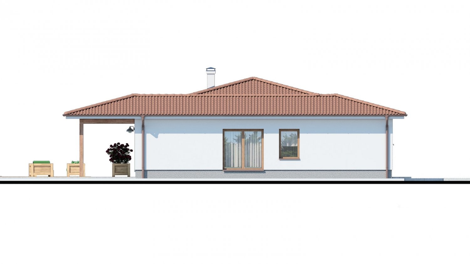 Classic bungalow with a small roof pitch Bungalow 187 is a house of a medium size category. It is wheelchair accessible, so it is also suitable for people with reduced mobility. This 5-room bungalow with a covered terrace can be chosen for implementation on a flat or gently sloping plot.