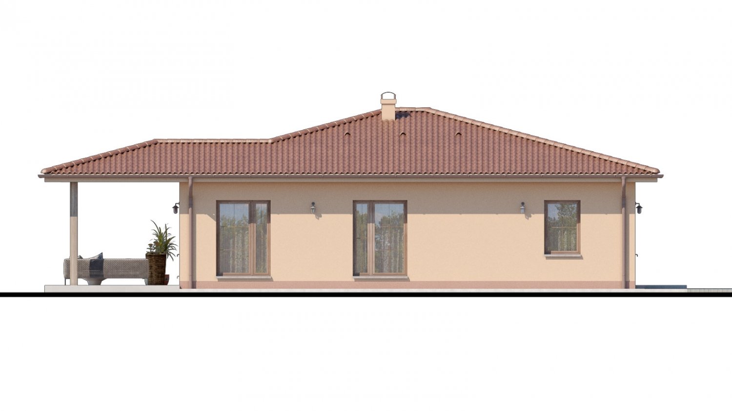 Top house project 2019 Bungalow 189 belongs to the middle size category. This 5-room house with a hipped roof is suitable for implementation on a flat or gently sloping building plot. The house with covered terrace Bungalow 189 does not have a garage. Parking can be arranged close to the house.
