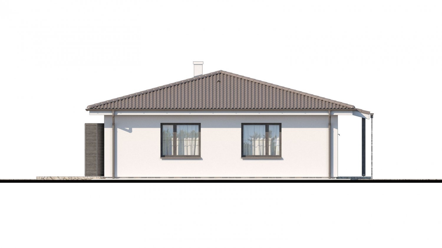 The ground-floor family house Bungalow 190 will appeal to anyone who enjoys efficient use of space with an eye for design. Like other Prodom house projects, this catalogue project also takes into account the need for daylight. Daylighting is provided by two windows and double-leaf patio doors.