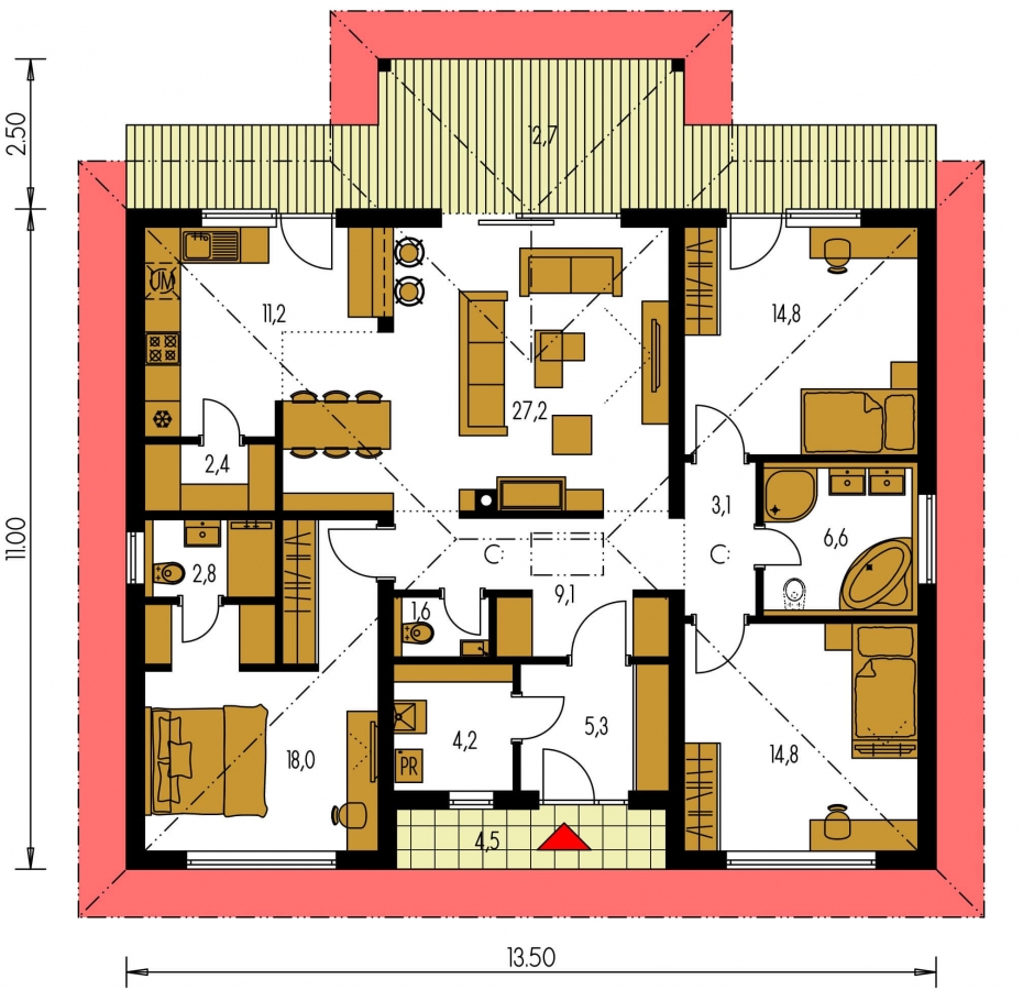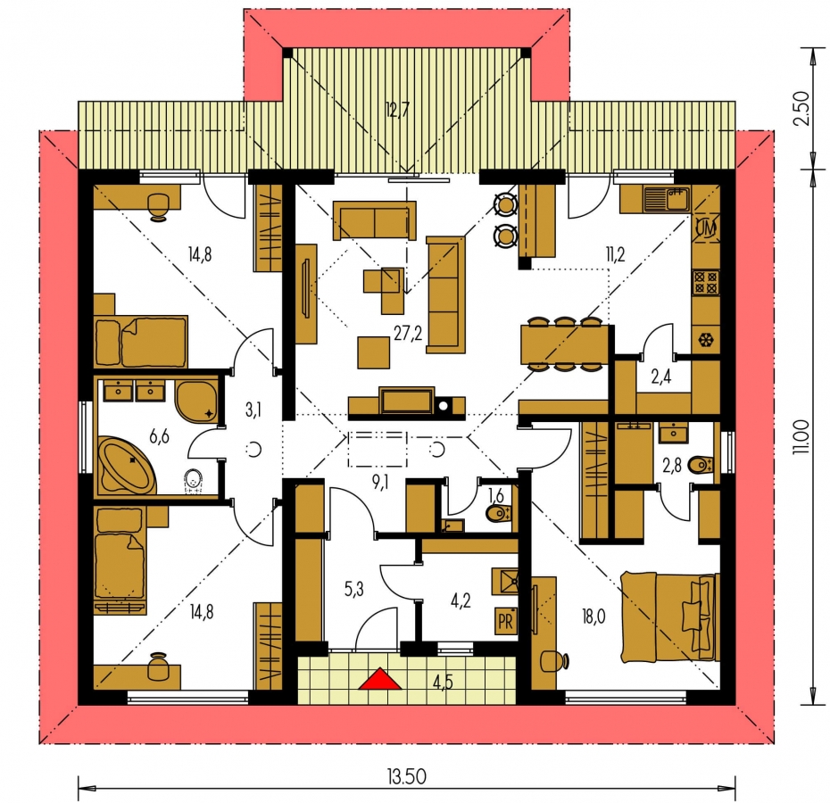 Bungalow type family house projects are among our best-sellers. The advantages of these houses are mainly that you usually have everything on one floor, so it is suitable for families with small children, for the elderly or people who need a barrier-free house project. If you already have a larger or smaller plot of land, you will definitely find a project for you in our offer.