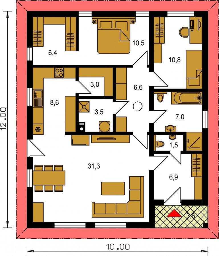 The ground floor 3-room house Bungalow 197 belongs to the medium size category. This brick house without a garage is suitable for realization on a flat or gently sloping plot. Parking can be arranged close to the house.