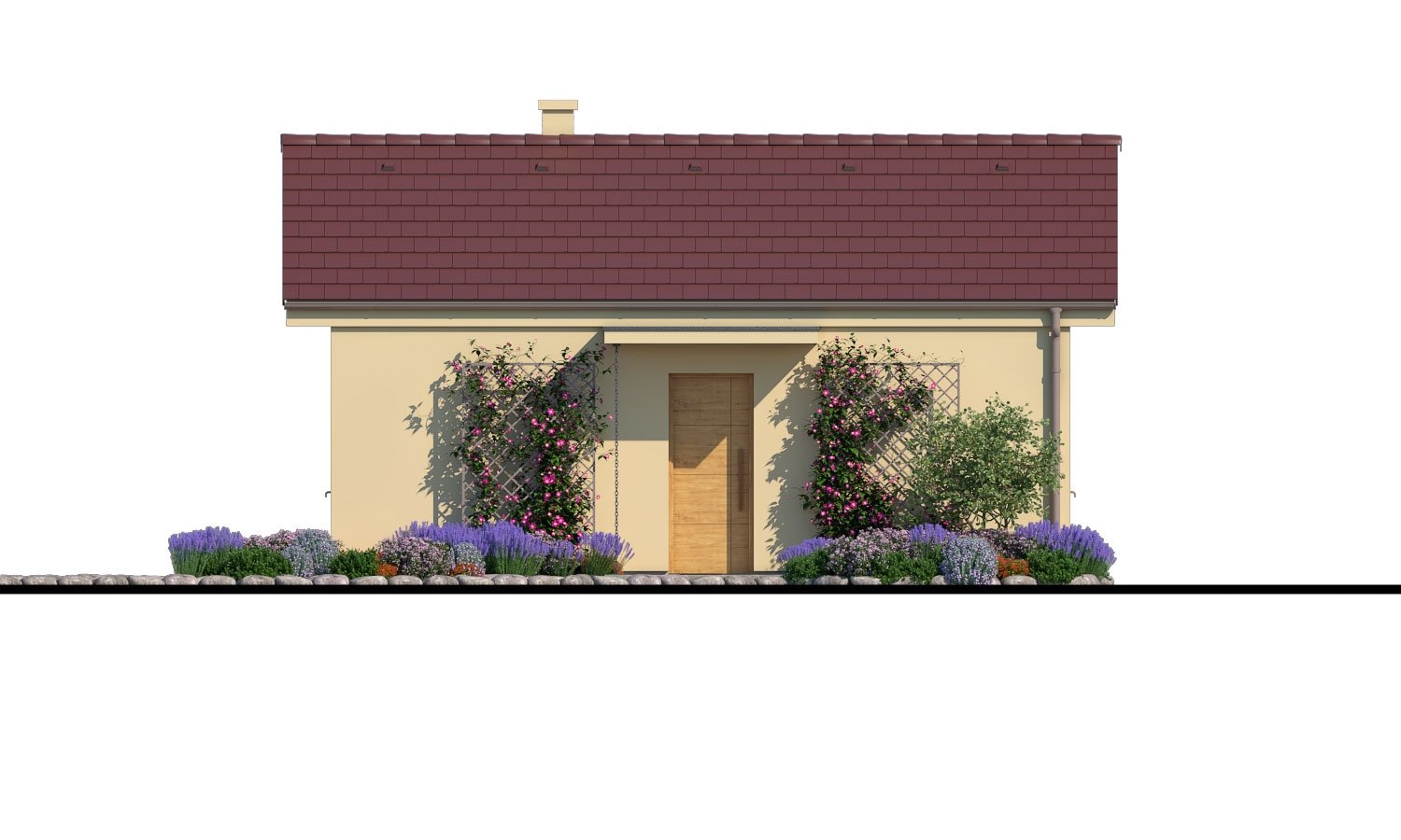 The catalogue project of the house on a narrow plot Bungalow 203 is classified as a house of a very small size category. This inexpensive brick house is wheelchair accessible. This solution will also suit people with reduced mobility. The house on a narrow plot, Bungalow 203 is suitable for low surrounding buildings. You can choose it for a flat or gently sloping plot.