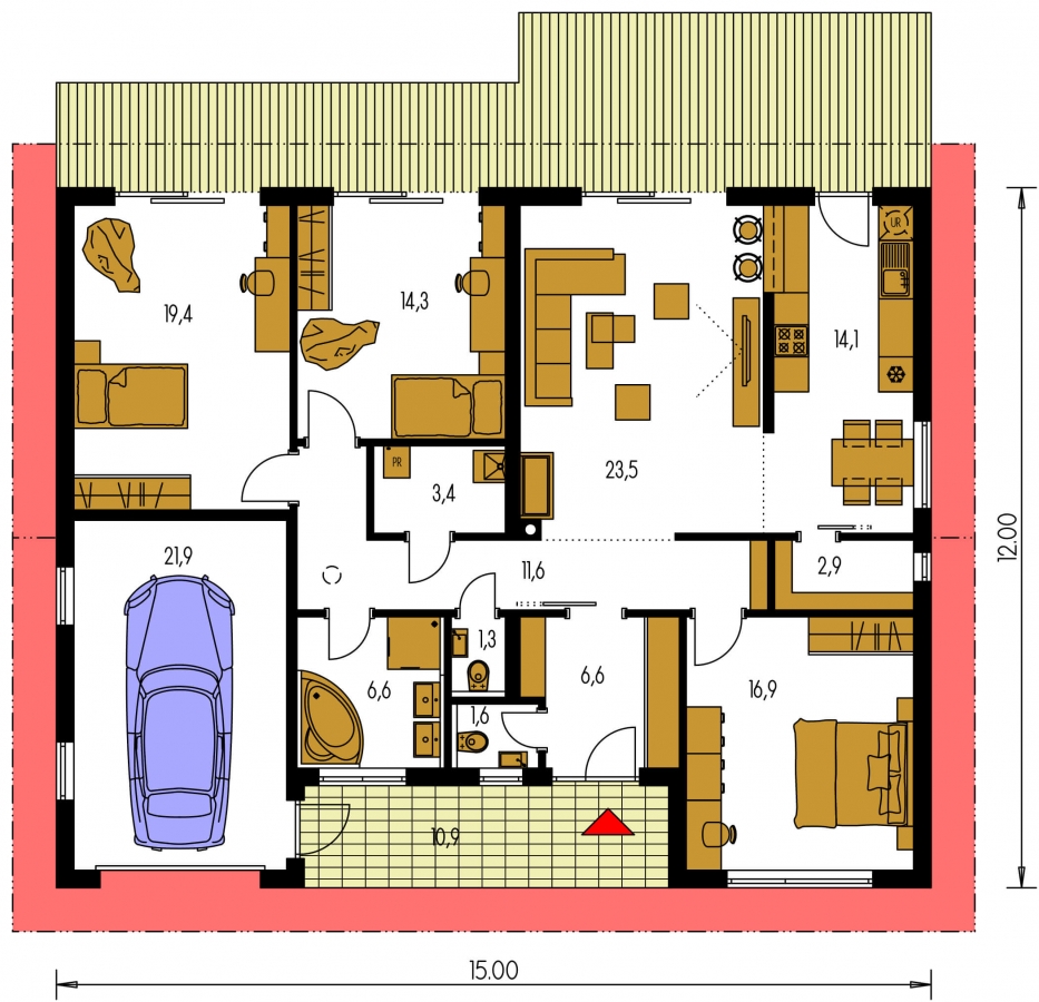 BUNGALOW 220 is a house in the smaller size category, for narrow plots. Suitable for single-storey surrounding buildings. The internal space in this house will meet the housing needs for a 4-5 memb...