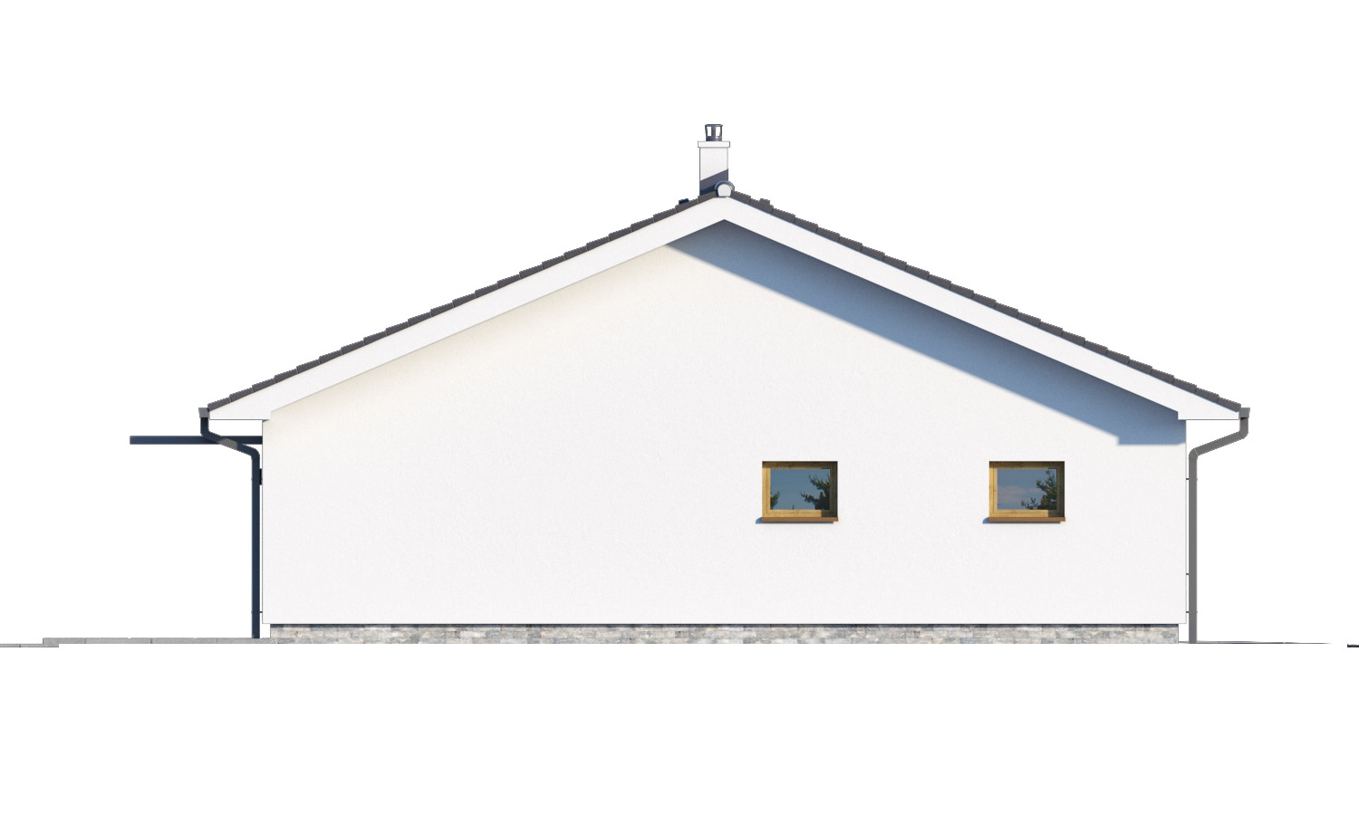 BUNGALOW 211 is a house in the medium size category, for medium width plots. Living area separate from bedrooms. Suitable for single-storey surrounding buildings. The internal space in this house will meet the housing needs for a 4 member family. The living room and kitchen are separate. The barrier-free design is appropriate for persons with reduced mobility. Suitable for flat and slightly sloped terrain. The house has a fireplace which provides heat and serves an irreplaceable aesthetic function. The house includes a spacious garage. Thanks to the room on the ground floor, you can avoid the need to take the stairs. Suitable for row construction thanks to its shape and layout.