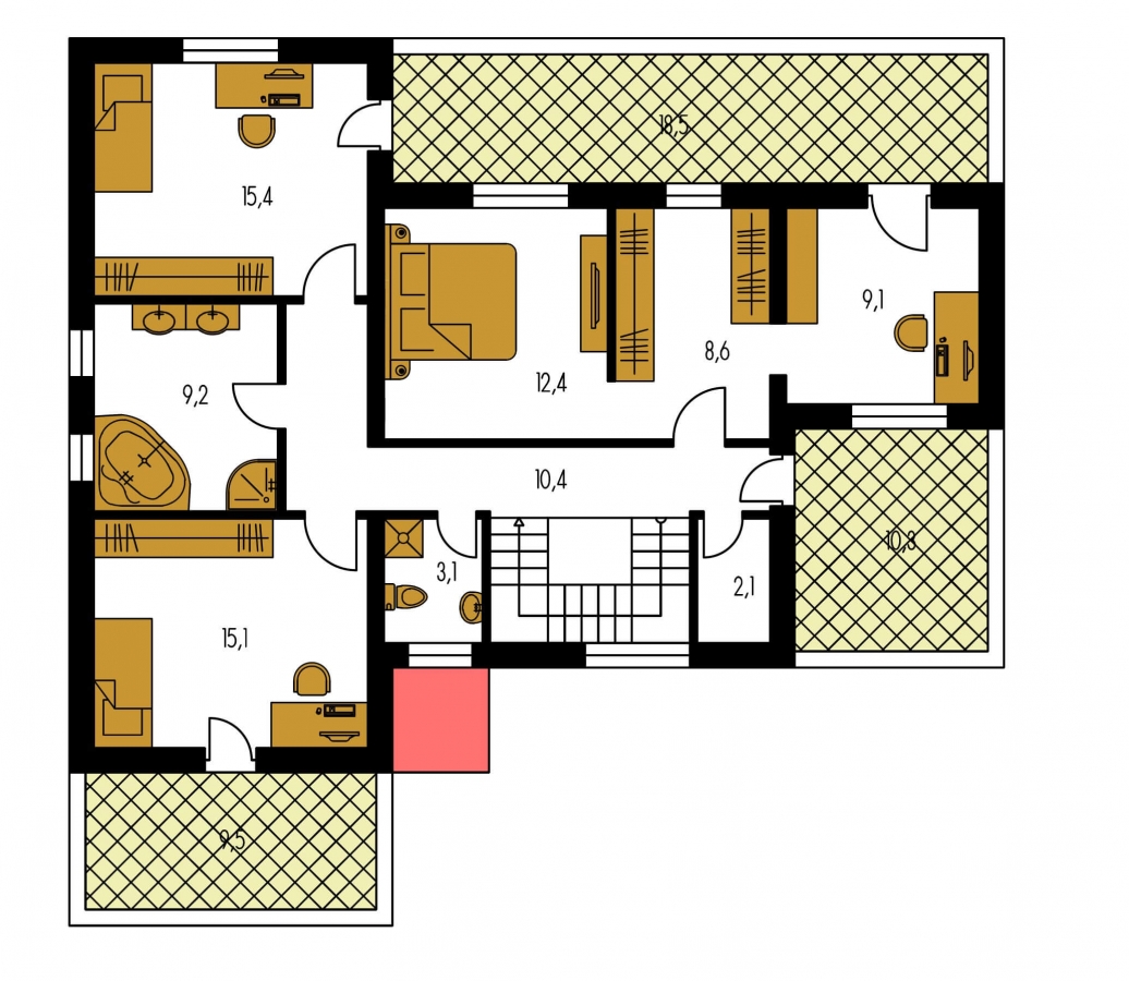 CUBER 5 is a house in the larger size category, for wider plots. Living area separate from bedrooms. Suitable for two-storey surrounding buildings The internal space in this house will meet the housing needs for a 5 member family. The living room and kitchen are separate. Suitable for flat and slightly sloped terrain. The house includes a spacious garage. Thanks to the room on the ground floor, you can avoid the need to take the stairs. Suitable for row construction thanks to its shape and layout.