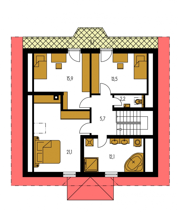 KLASSIK 125 is a house in the medium size category, for medium width plots. Living area separate from bedrooms. Suitable for two-storey surrounding buildings The internal space in this house will meet the housing needs for a 4 member family. The living room and kitchen are separate. Suitable for flat and slightly sloped terrain. The house has a fireplace which provides heat and serves an irreplaceable aesthetic function.