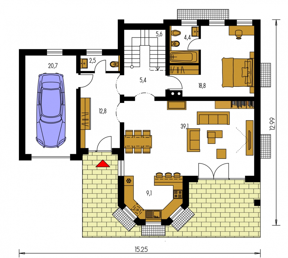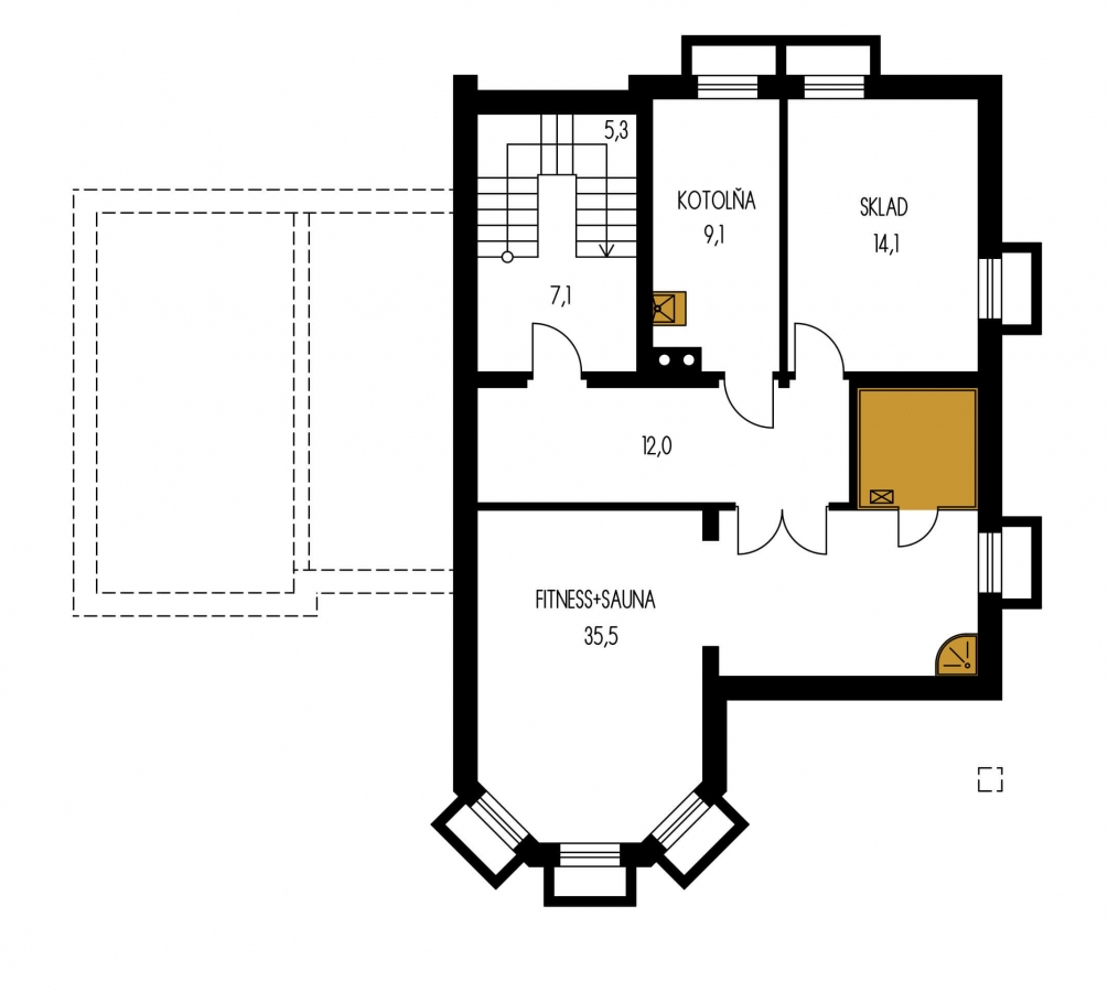 KLASSIK 137 is a house in the larger size category, for wider plots. Suitable for two-storey surrounding buildings The internal space in this house will meet the housing needs for a 7 member family. The living room and kitchen form a single large space. Suitable for flat and slightly sloped terrain. The house has a fireplace which provides heat and serves an irreplaceable aesthetic function. The house includes a spacious garage. Thanks to the room on the ground floor, you can avoid the need to take the stairs. This family house has a basement.