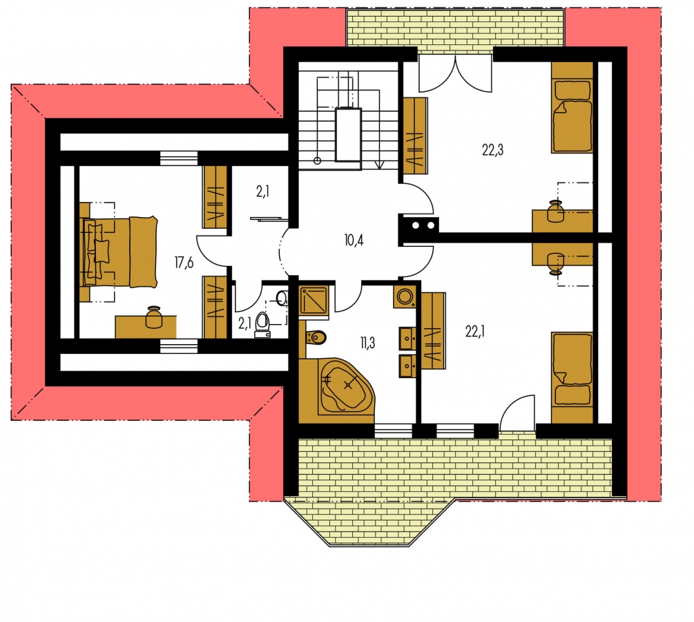 You can create a semi-detached family house by connecting two suitable family house projects. One of them is mirrored to the other. Houses may be single or multi-storey, but they can only be connected via the walls without windows. Any windows in the wall may be eliminated or moved to another side.