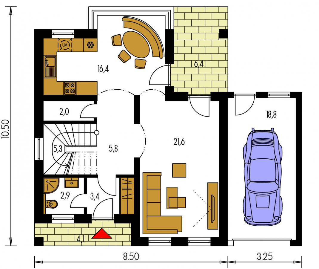 House with a garage and a room on the ground floor. Suitable as a semi-detached house.