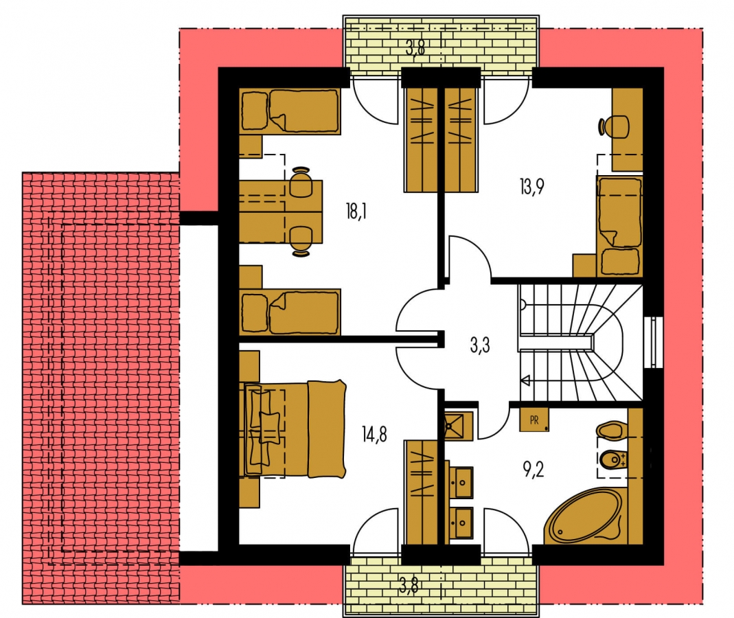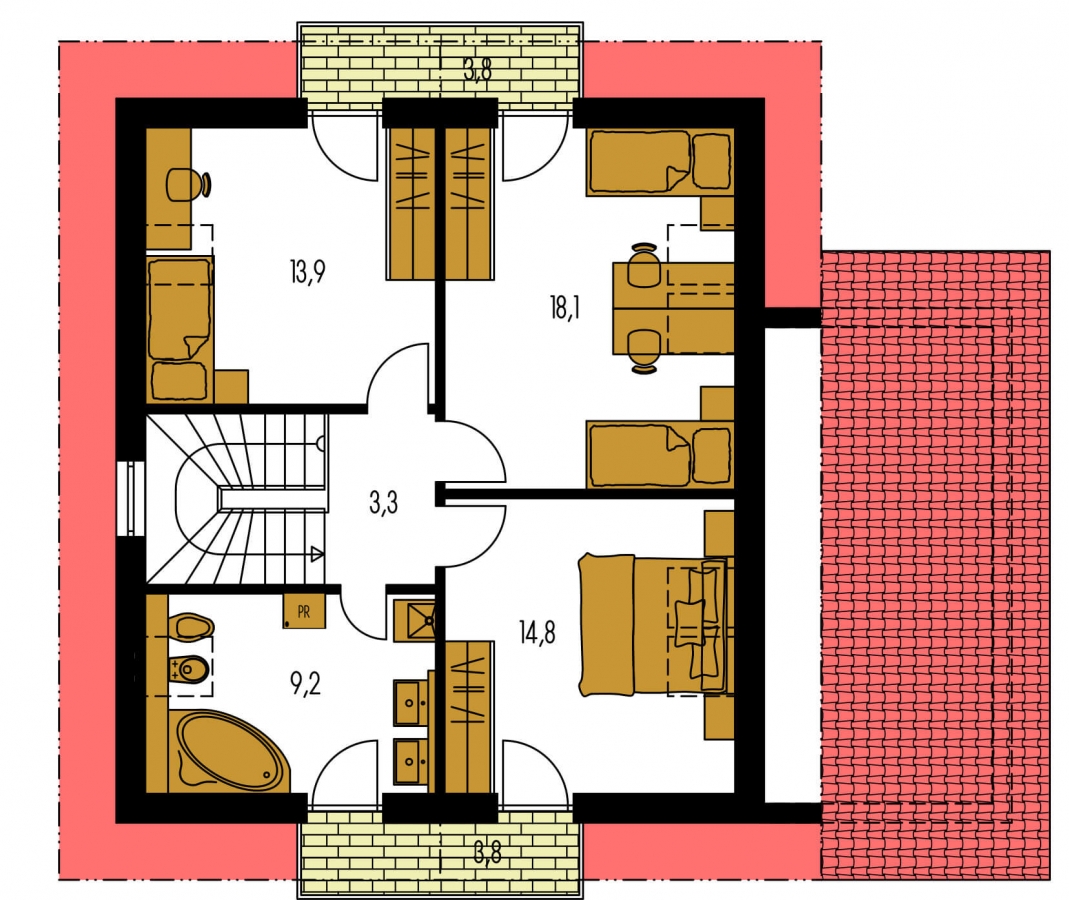 Family houses with a closed space thanks to their L-shaped design are often a popular category of family house. In this area, a private zone can be created for you, where the house itself protects you from the surrounding environment and creates an intimate space for you. You choose a family house according to the cardinal directions; it is best if this space faces south, but the surrounding buildings must also be taken into account.