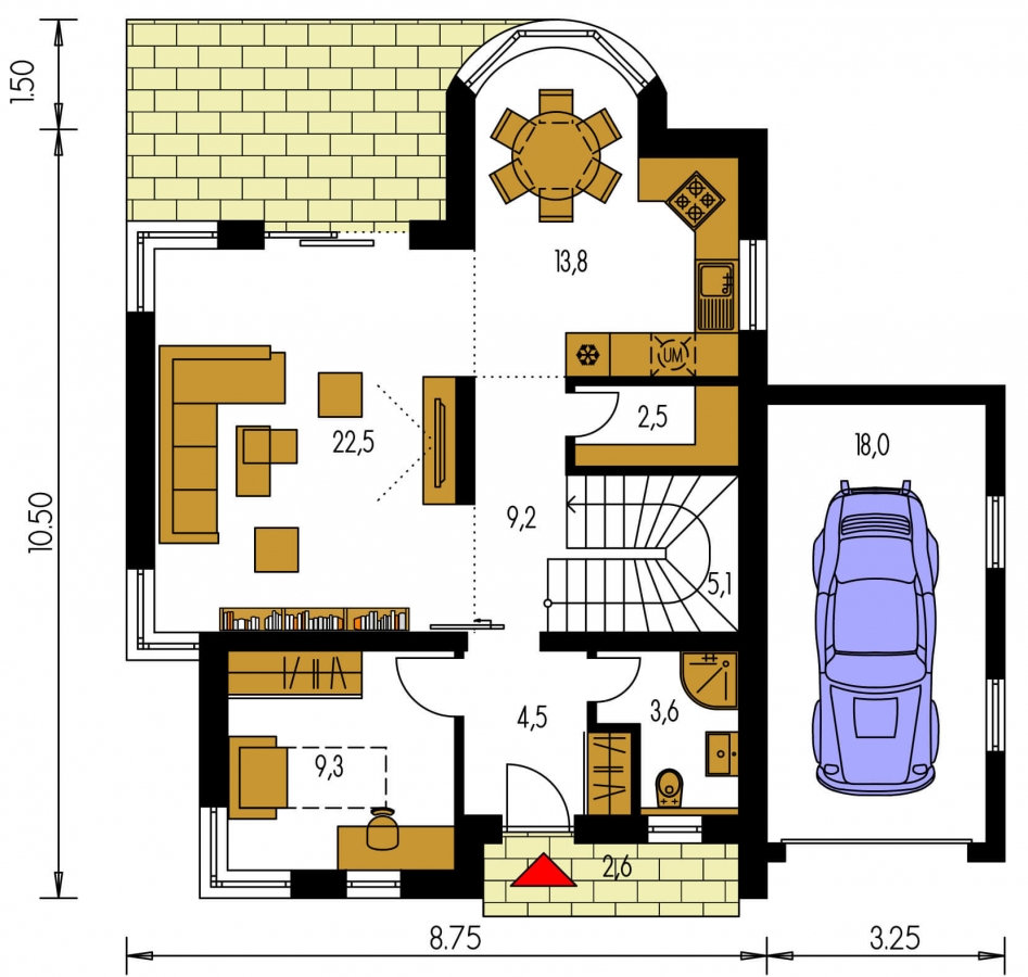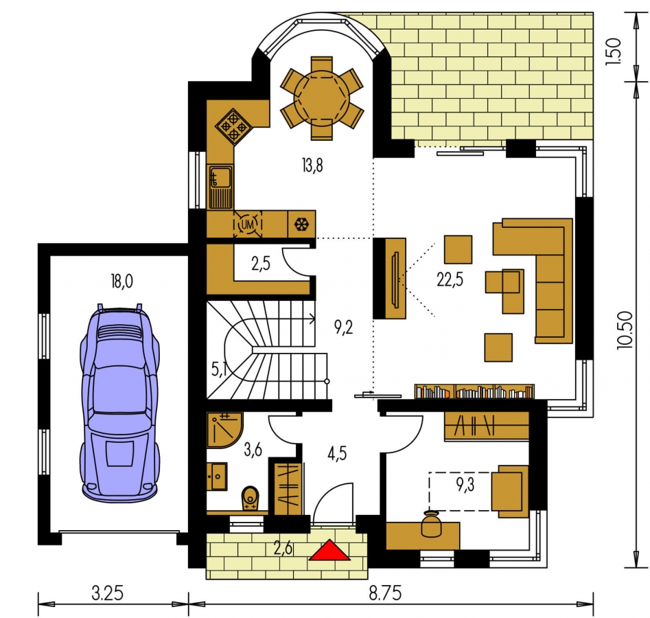 KLASSIK 161 is a house in the medium size category, for medium width plots. Suitable for two-storey surrounding buildings The internal space in this house will meet the housing needs for a 5-6 member family. The living room and kitchen form a single large space. Suitable for flat and slightly sloped terrain. The house includes a spacious garage. Thanks to the room on the ground floor, you can avoid the need to take the stairs.
