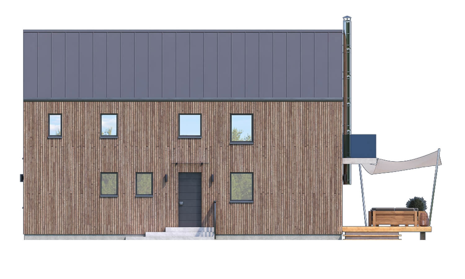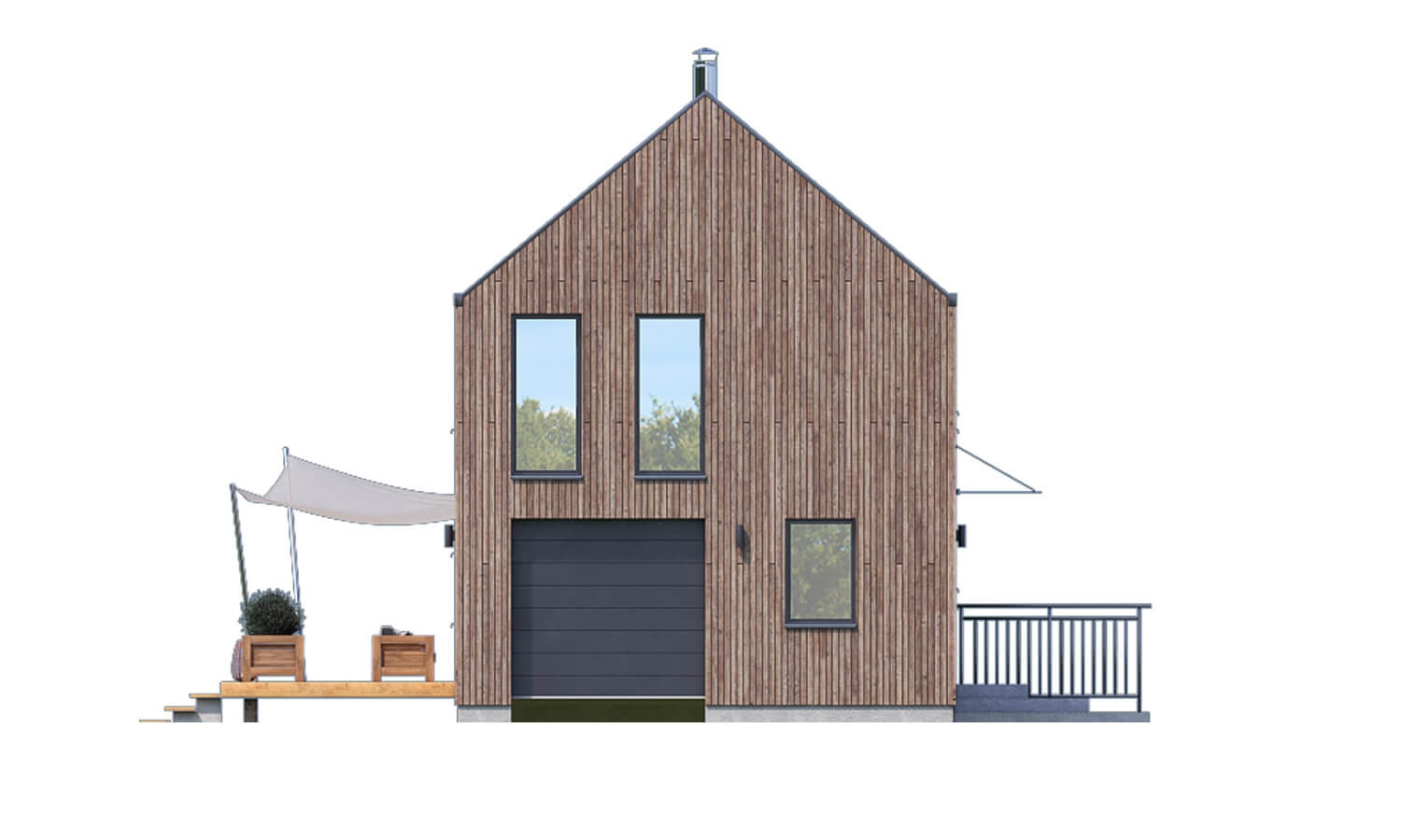 This family house belongs to the category of Modern family houses. But it is up to you whether to use modern materials, various types of façade cladding or modern elements in interiors. Ultimately, the owner will be led to a house in the MODERN category with his/her approach to construction and the use of modern technologies, of which there are many at present.