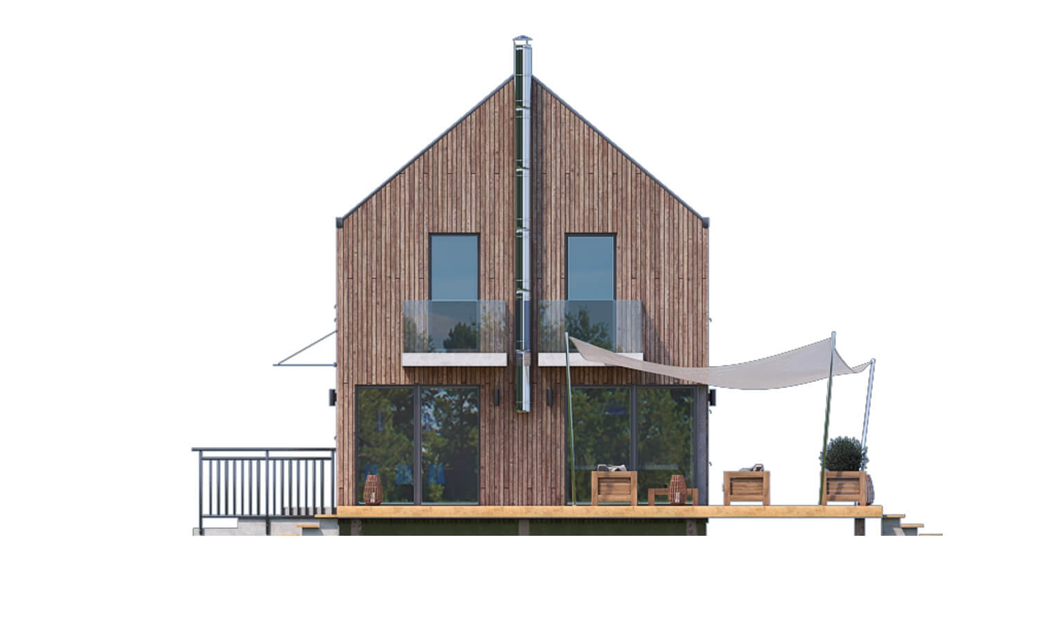 Family house with almost zero energy consumption Merkur 1 will suit a family of 4-5 members. You can build this two-storey house on flat to gently sloping terrain.