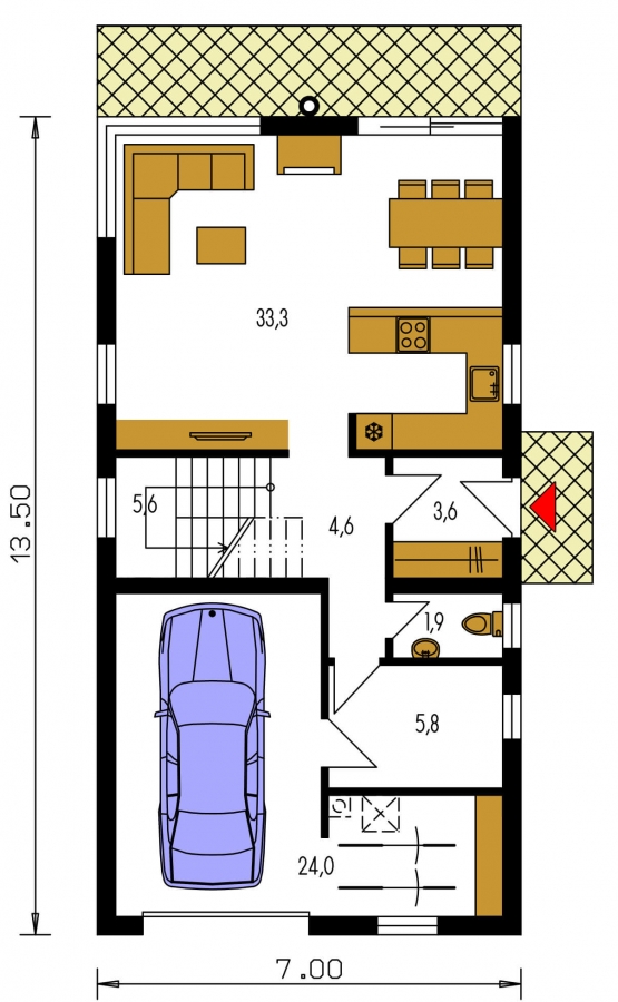 If you have a narrow plot of land on which you plan to build a family house, then this family house project is a suitable solution for you. This narrow plot project is designed to maximise limited space while maintaining the functionality of the house. It makes efficient use of space on the plot.