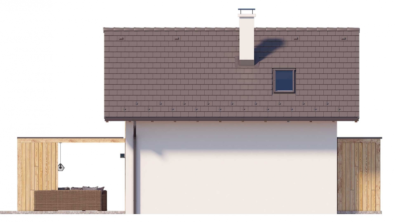 ZEN 2 is a house in the smaller size category, for narrow plots. Suitable for two-storey surrounding buildings The internal space in this house will meet the housing needs for a 3-4 member family. The living room and kitchen form a single large space. Suitable for flat and slightly sloped terrain. The house has a fireplace which provides heat and serves an irreplaceable aesthetic function. Suitable for row construction thanks to its shape and layout.