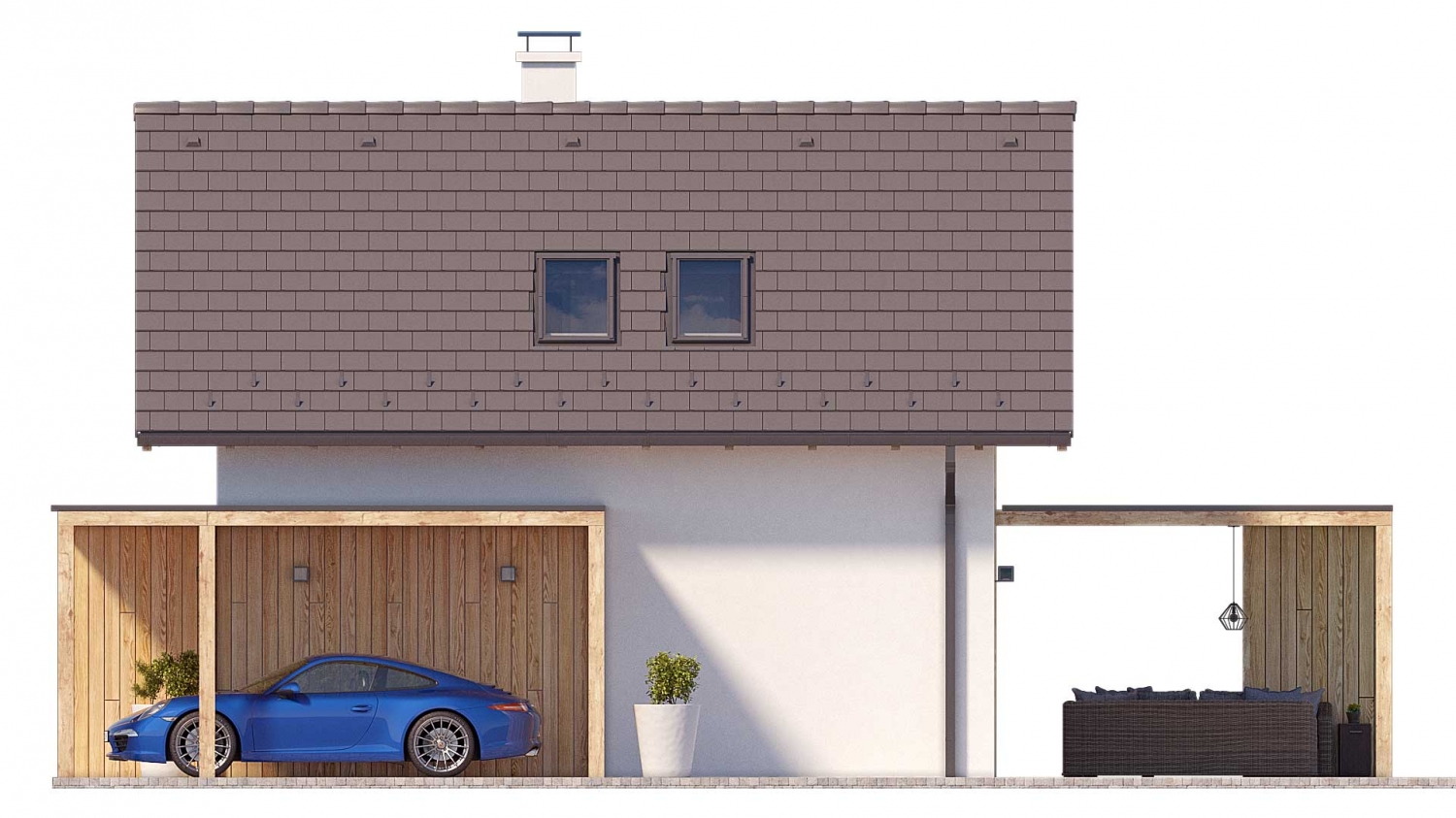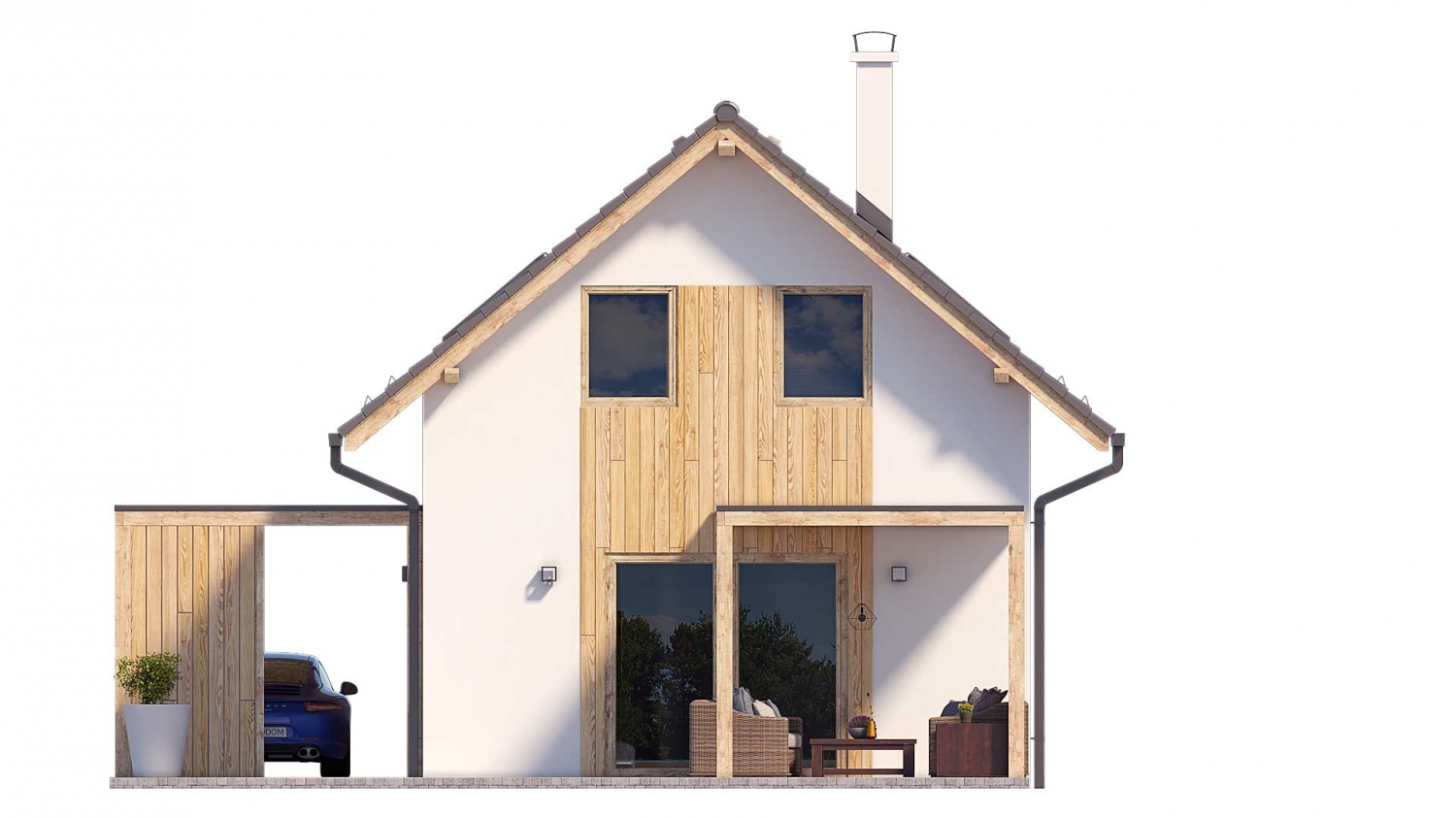 The project of a family house without a garage ZEN 2 is designed for living for 3 - 4 people or recreation. It is suitable for flat or gently sloping land. Parking can be arranged next to the house, even with a roof.