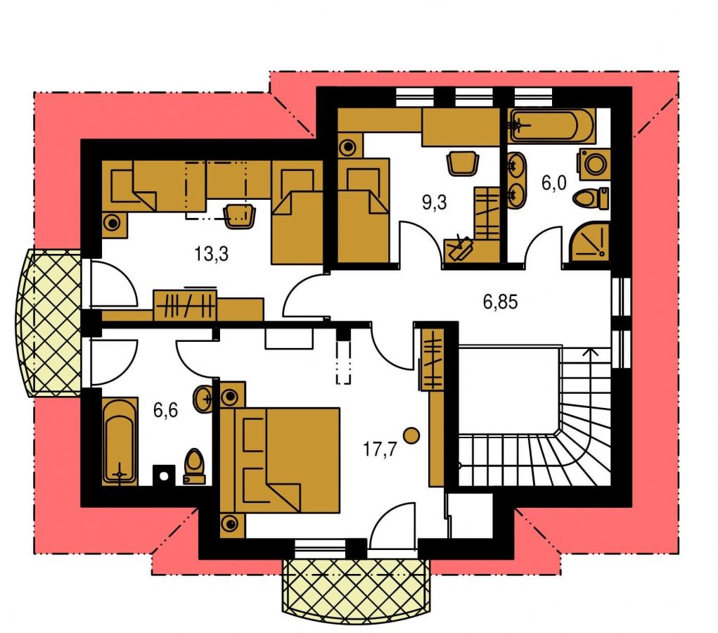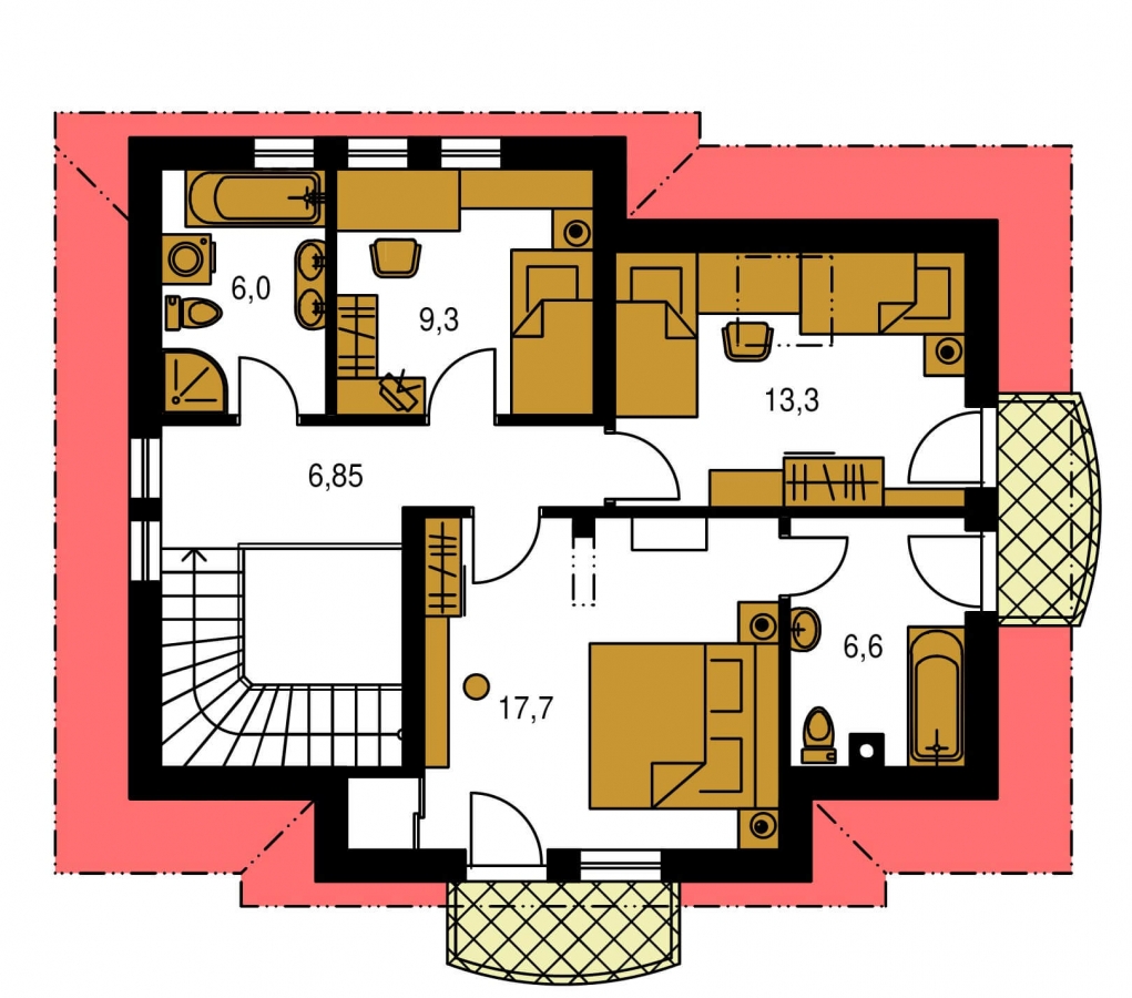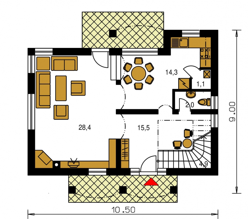PORTO 20 is a house in the medium size category, for medium width plots. Suitable for two-storey surrounding buildings The internal space in this house will meet the housing needs for a 4-5 member family. The living room and kitchen are separate. Suitable for flat and slightly sloped terrain. The house has a fireplace which provides heat and serves an irreplaceable aesthetic function.