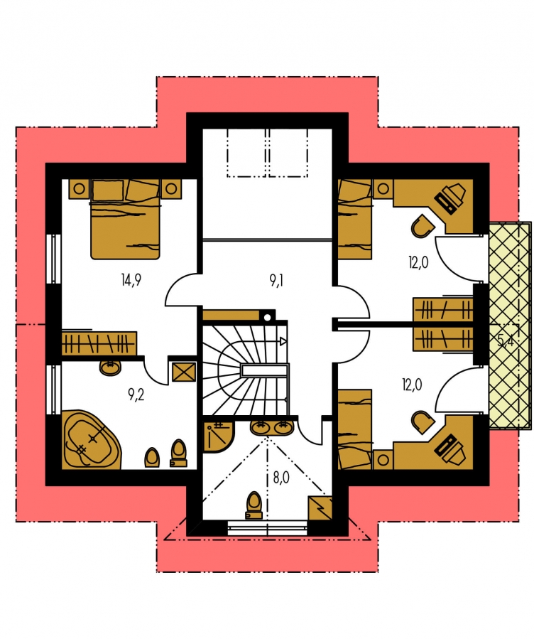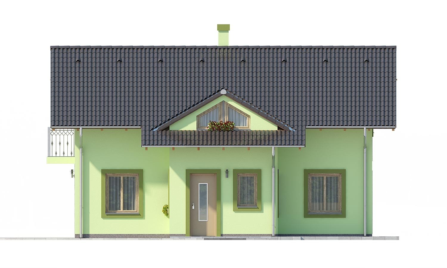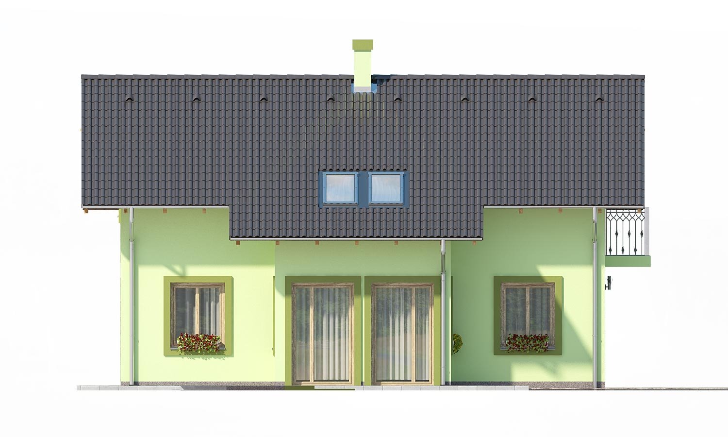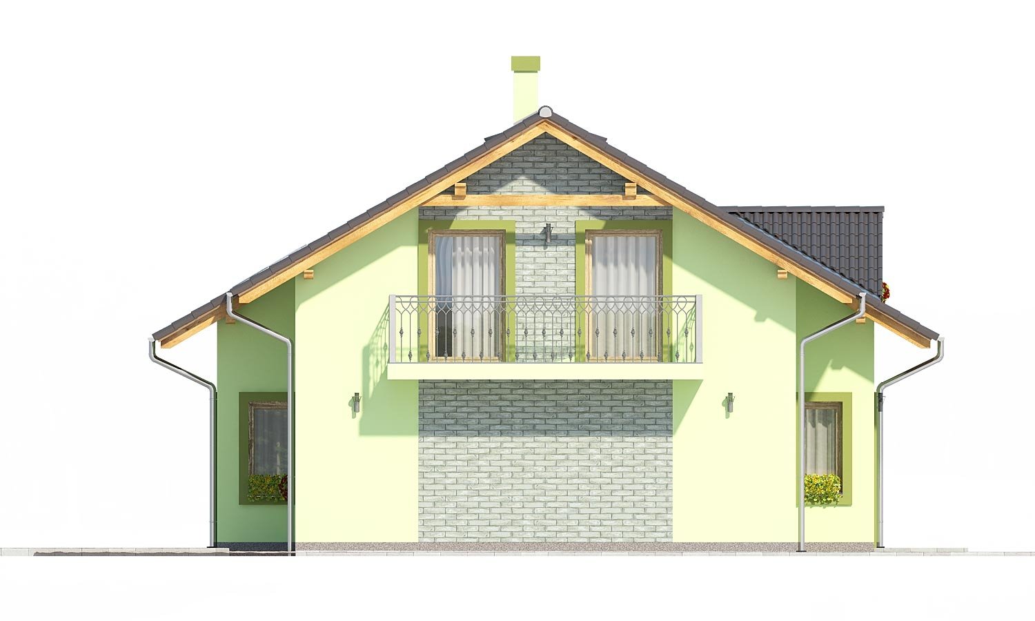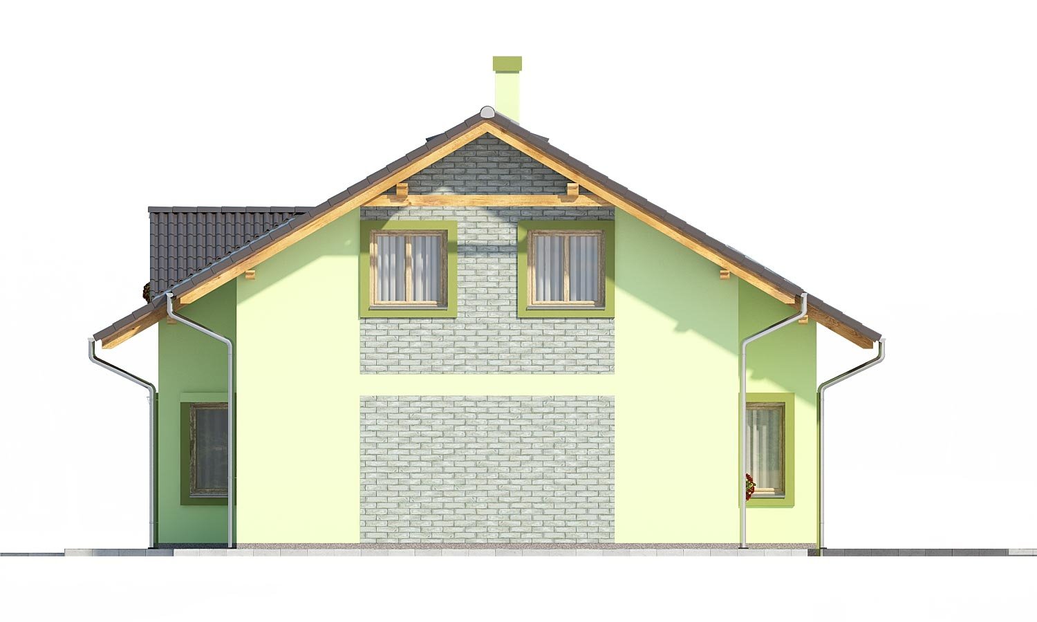PREMIER 178 is a house in the medium size category, for medium width plots. Suitable for two-storey surrounding buildings The internal space in this house will meet the housing needs for a 5 member family. The living room and kitchen form a single large space. Suitable for flat and slightly sloped terrain. The house has a fireplace which provides heat and serves an irreplaceable aesthetic function. Thanks to the room on the ground floor, you can avoid the need to take the stairs.