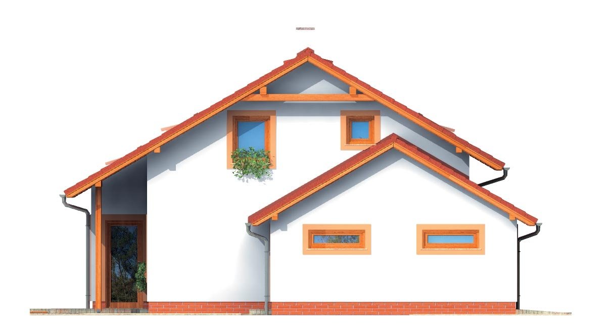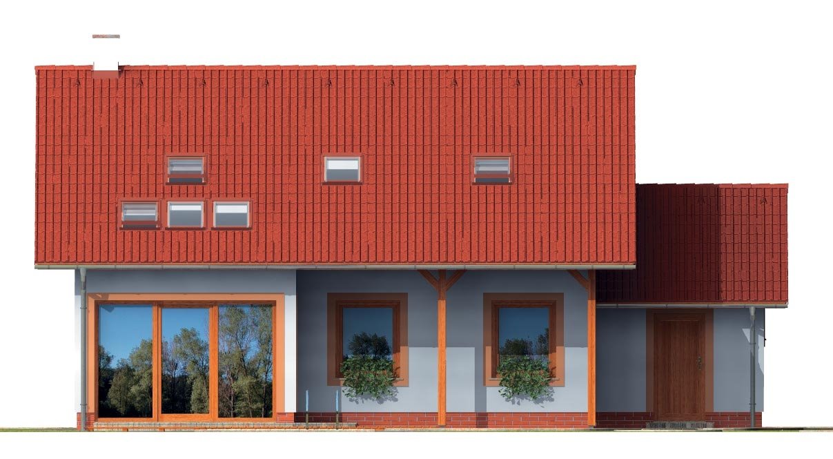 PREMIER 189 is a house in the medium size category, for medium width plots. Suitable for two-storey surrounding buildings The internal space in this house will meet the housing needs for a 5-6 member family. The living room and kitchen form a single large space. Suitable for flat and slightly sloped terrain. The house has a fireplace which provides heat and serves an irreplaceable aesthetic function. The house includes a spacious garage. Thanks to the room on the ground floor, you can avoid the need to take the stairs. Suitable for row construction thanks to its shape and layout.