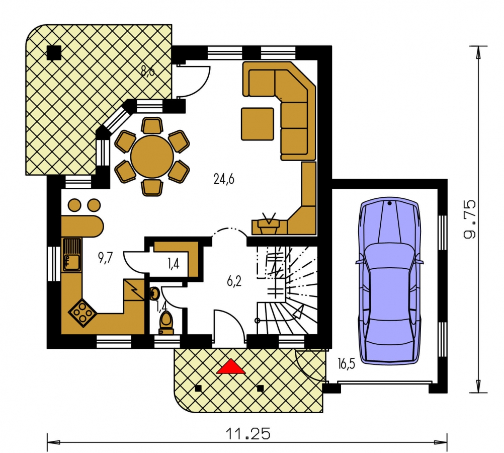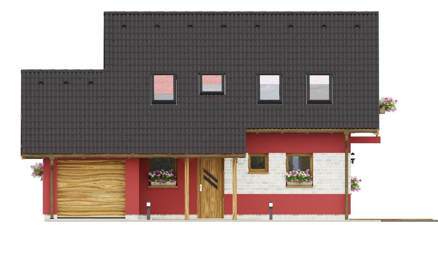PREMIER 63 is a house in the medium size category, for medium width plots. Suitable for two-storey surrounding buildings The internal space in this house will meet the housing needs for a 4 member family. The living room and kitchen form a single large space. Suitable for flat and slightly sloped terrain. The house includes a spacious garage.