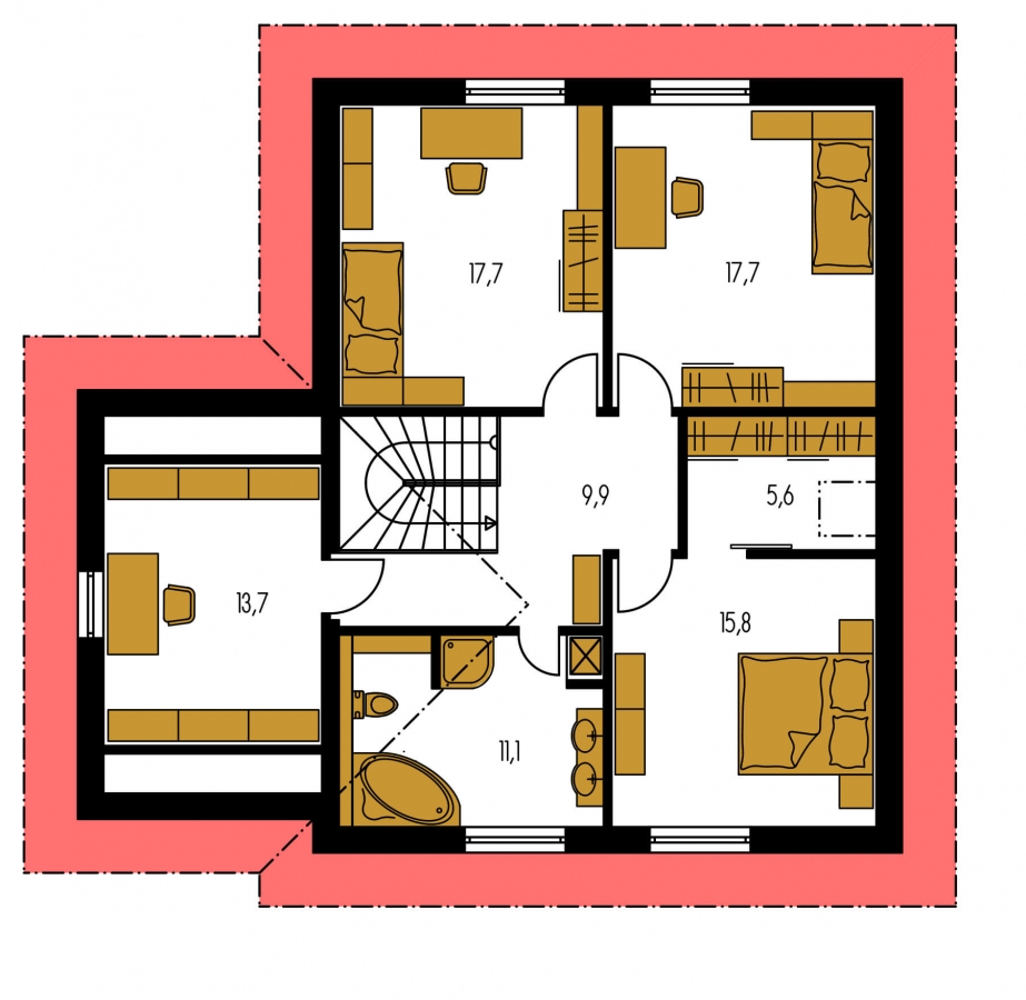 Family houses with a closed space thanks to their L-shaped design are often a popular category of family house. In this area, a private zone can be created for you, where the house itself protects you from the surrounding environment and creates an intimate space for you. You choose a family house according to the cardinal directions; it is best if this space faces south, but the surrounding buildings must also be taken into account.