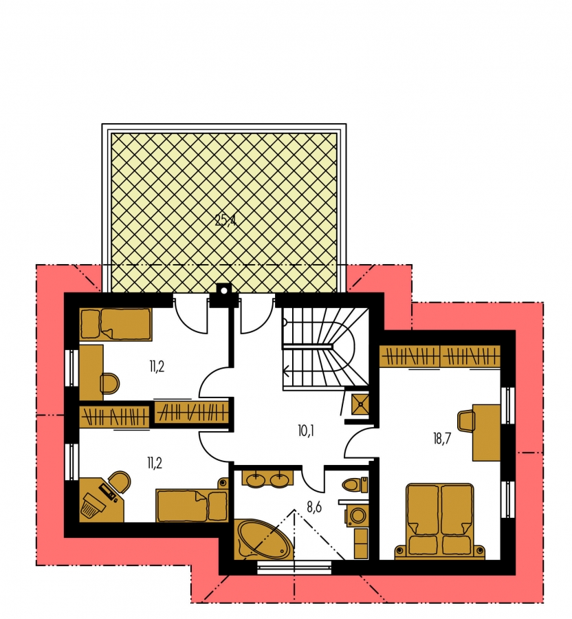 This family house belongs to the category of Modern family houses. But it is up to you whether to use modern materials, various types of façade cladding or modern elements in interiors. Ultimately, the owner will be led to a house in the MODERN category with his/her approach to construction and the use of modern technologies, of which there are many at present.