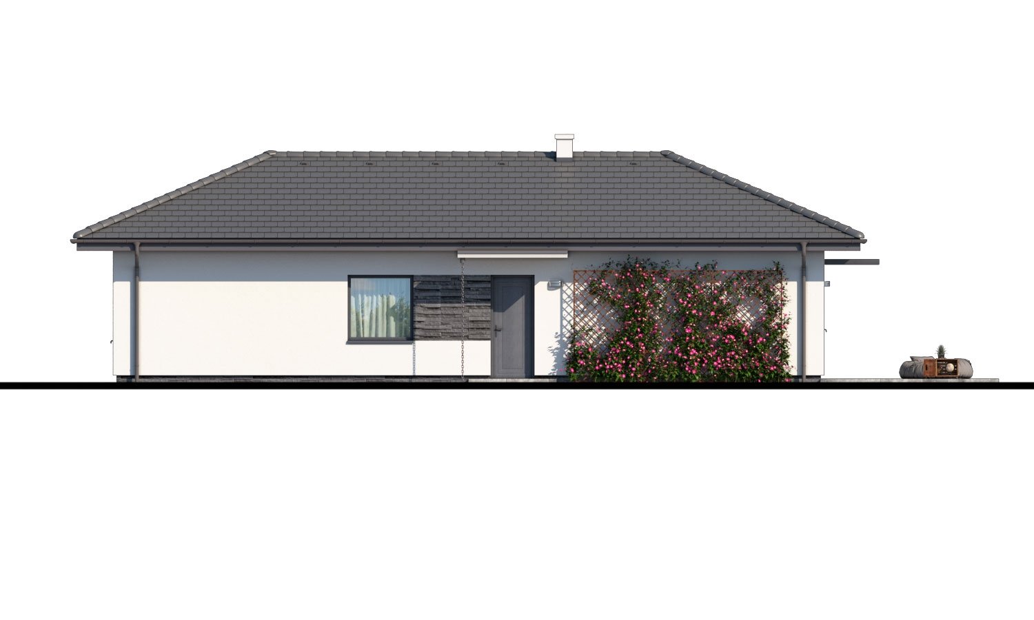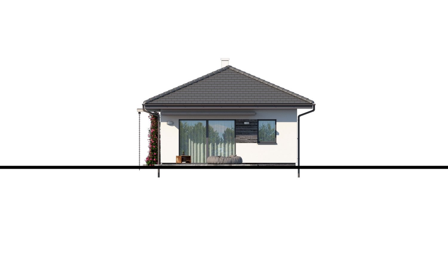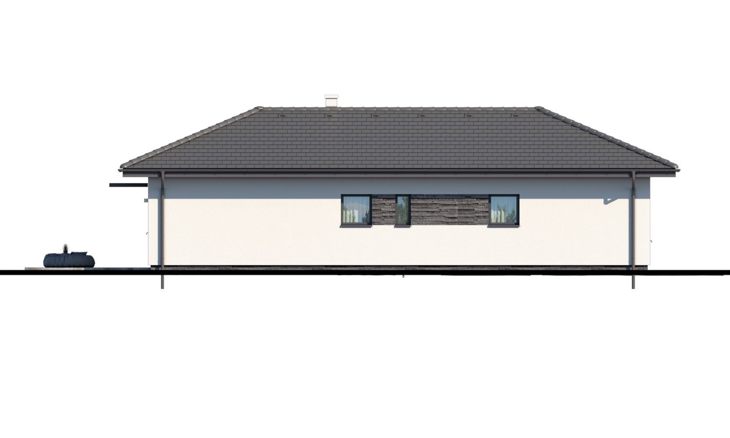 Simple shape, generous living area, living room with fireplace and pantry in the kitchen. These are all the advantages offered by the 4-room house project Bungalow 200. This family house with a fireplace will suit for living 4 - 5 members of the family. It also puts emphasis on the interior light through the windows. The house on a narrow plot Bungalow 200 is also one of the houses with almost zero energy demand. Therefore, it will also fulfil your requirements for saving on heating and air conditioning.