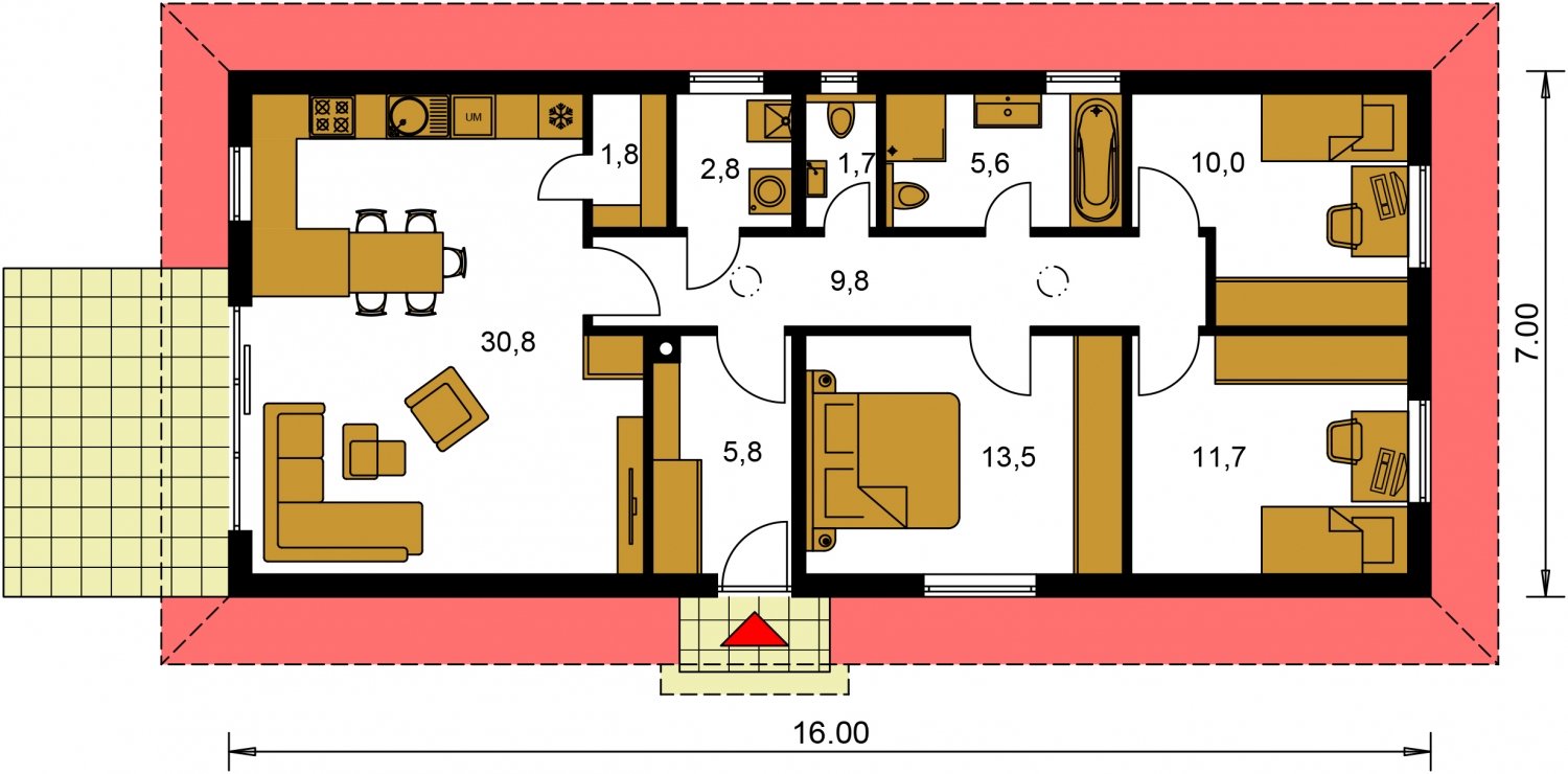 BUNGALOW 206 is a house in the smaller size category, for narrow plots. Suitable for single-storey surrounding buildings. The internal space in this house will meet the housing needs for a 4-5 memb...