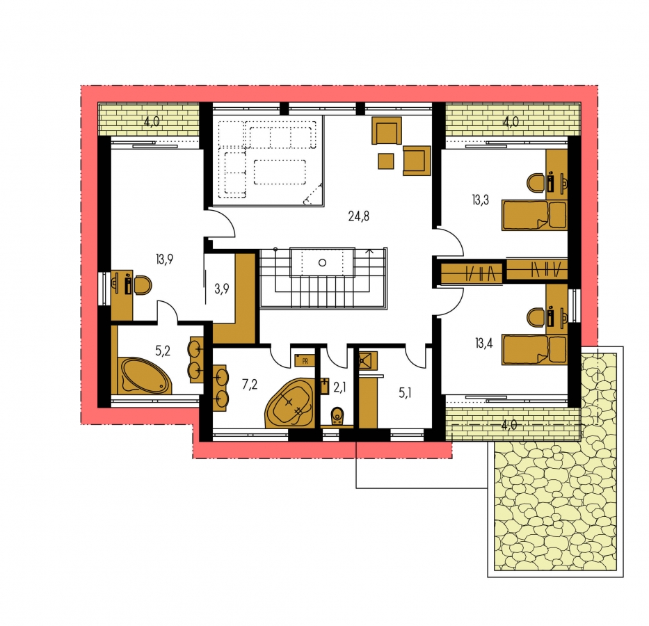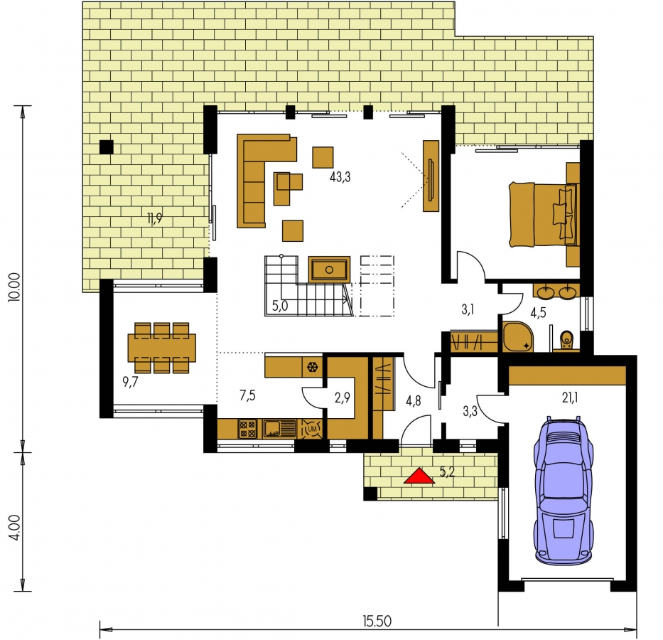 This family house belongs to the category of Modern family houses. But it is up to you whether to use modern materials, various types of façade cladding or modern elements in interiors. Ultimately, the owner will be led to a house in the MODERN category with his/her approach to construction and the use of modern technologies, of which there are many at present.