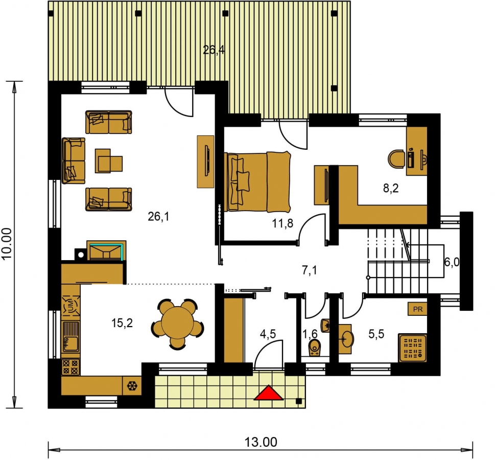 This family house belongs to the category of Modern family houses. But it is up to you whether to use modern materials, various types of façade cladding or modern elements in interiors. Ultimately, the owner will be led to a house in the MODERN category with his/her approach to construction and the use of modern technologies, of which there are many at present.