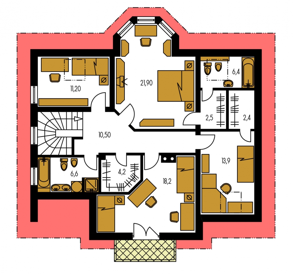 You can create a semi-detached family house by connecting two suitable family house projects. One of them is mirrored to the other. Houses may be single or multi-storey, but they can only be connected via the walls without windows. Any windows in the wall may be eliminated or moved to another side.