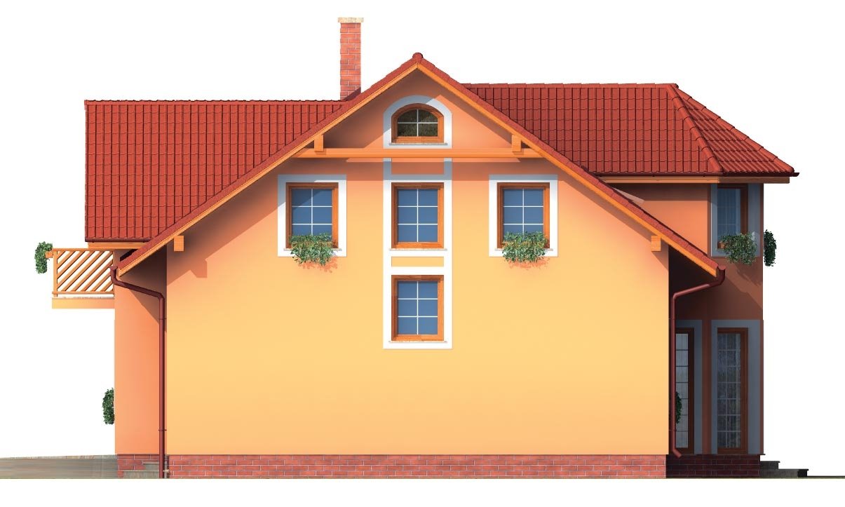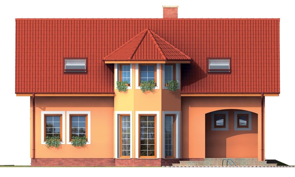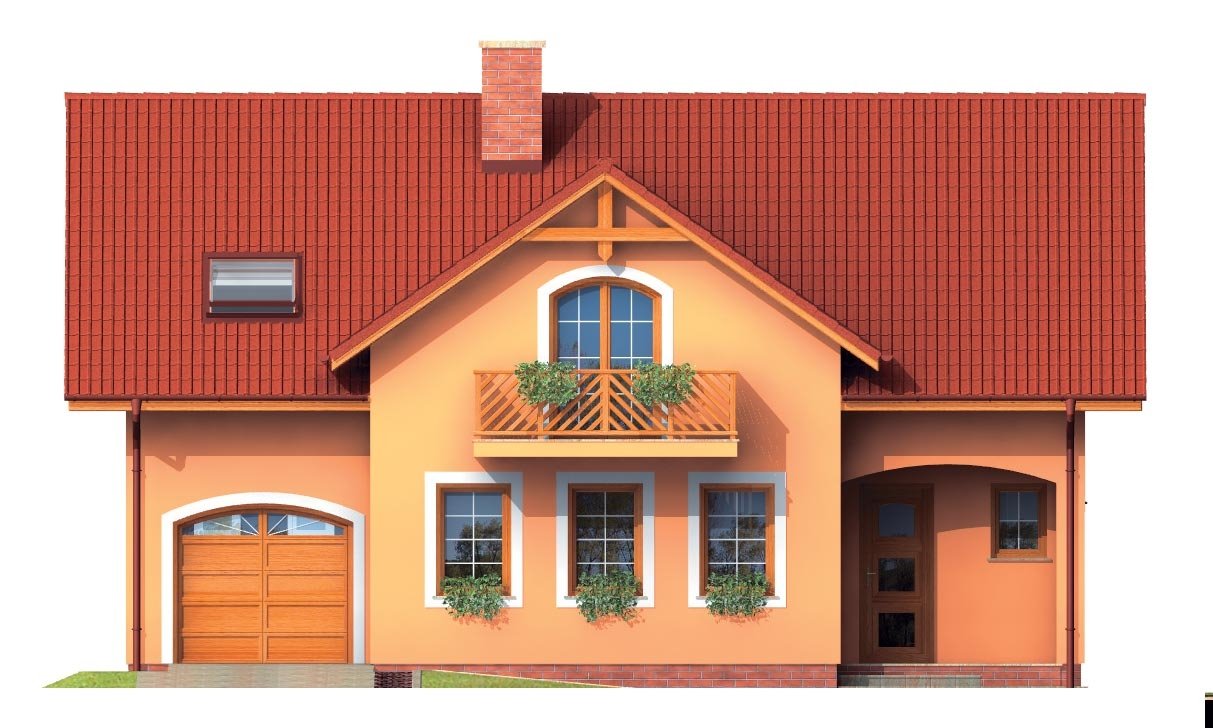 PREMIER 150 is a house in the larger size category, for medium width plots. Living area separate from bedrooms. Suitable for two-storey surrounding buildings The internal space in this house will meet the housing needs for a 6-8 member family. The living room and kitchen are separate. Suitable for flat and slightly sloped terrain. The house has a fireplace which provides heat and serves an irreplaceable aesthetic function. The house includes a spacious garage. Thanks to the room on the ground floor, you can avoid the need to take the stairs. Suitable for row construction thanks to its shape and layout. This family house has a basement.