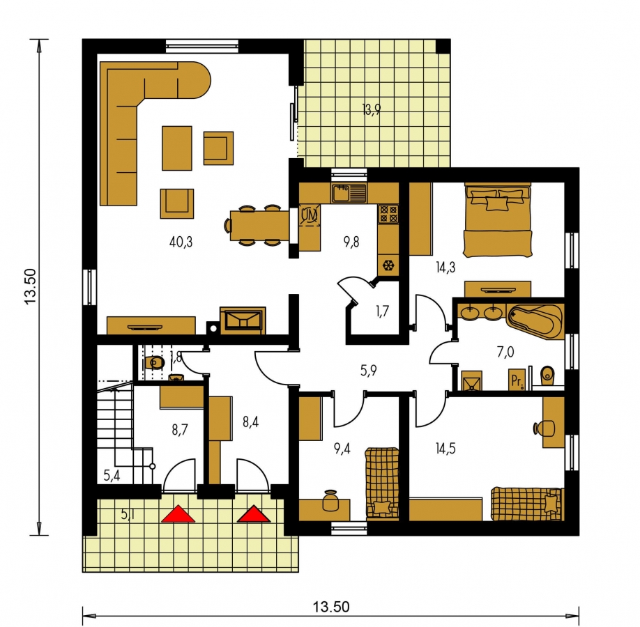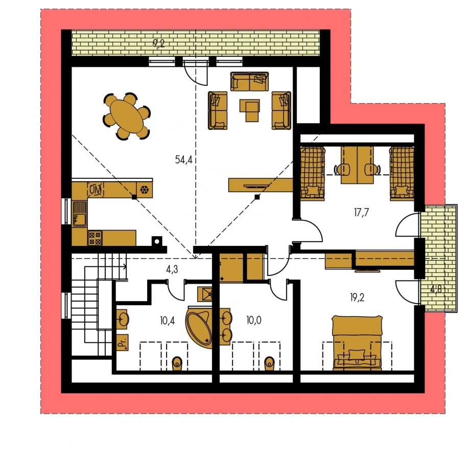 Family houses with a closed space thanks to their L-shaped design are often a popular category of family house. In this area, a private zone can be created for you, where the house itself protects you from the surrounding environment and creates an intimate space for you. You choose a family house according to the cardinal directions; it is best if this space faces south, but the surrounding buildings must also be taken into account.
