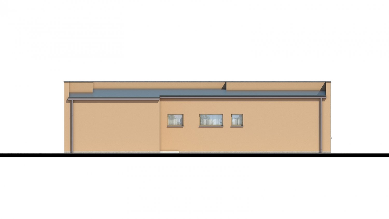 La moderna casa de techo plano Bungalow 166-PS pertenece a la categoría de tamaño más grande. Esta casa unifamiliar con garaje también se adaptará a personas con movilidad reducida. Se puede construir en un terreno plano o con poca pendiente. Desde el garaje para un automóvil, se accede directamente al interior de la casa.