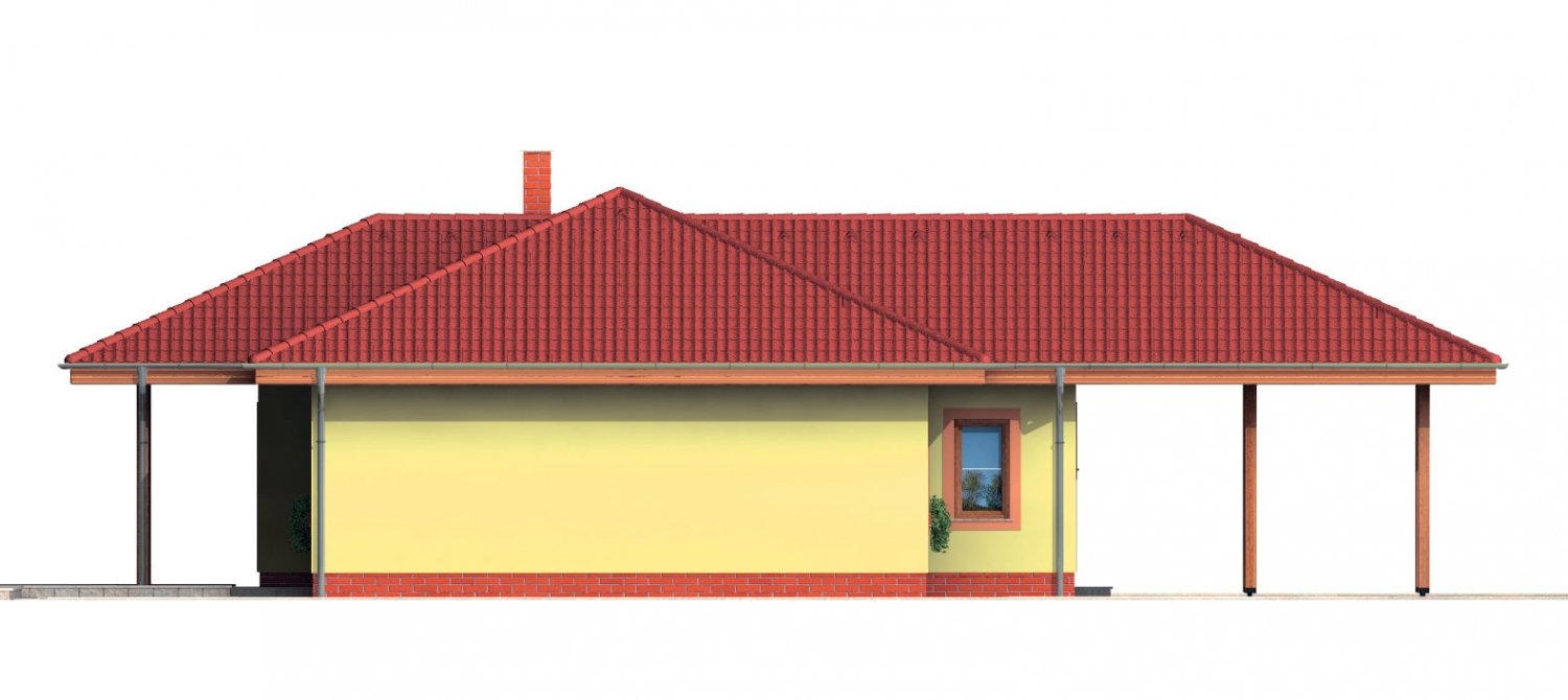 El proyecto de casa familiar Bungalow 27 es adecuado para construir en terrenos planos o con poca pendiente. El estacionamiento para dos autos con techo se encuentra frente a la entrada de la casa. Este proyecto de bungalow también impresiona con una terraza cubierta y bajos costos de calefacción.