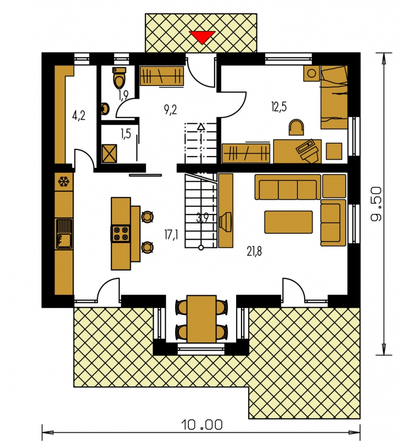 KLASSIK 167 es una casa de tamaño mediano, para parcelas de anchura media. Adecuada para edificios circundantes de dos plantas. El espacio interno de esta casa satisface las necesidades de una familia de 5-6 miembros. El salón y la cocina forman un gran espacio único. Adecuada para terrenos planos y ligeramente inclinados. Gracias a la habitación de la planta baja, puedes evitar subir escaleras.