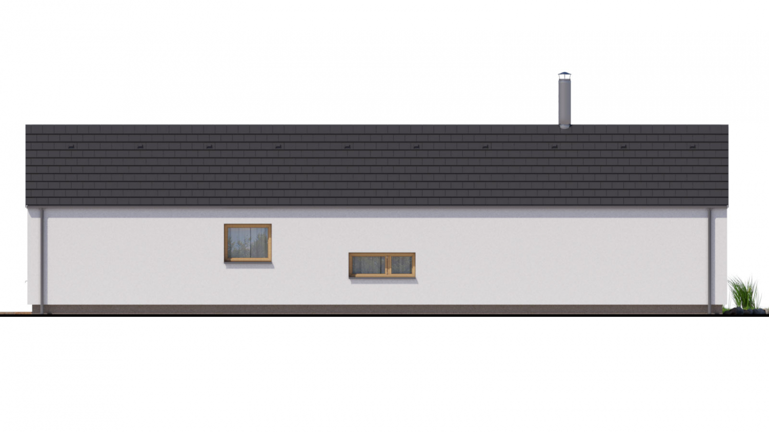 MINI 2 es una casa de tamaño más pequeño, para parcelas estrechas. Adecuada para edificios circundantes de una sola planta. El espacio interno de esta casa satisface las necesidades de una familia de 3-4 miembros. El salón y la cocina forman un gran espacio único. El diseño sin barreras arquitectónicas es adecuado para personas con movilidad reducida. Adecuada para terrenos planos y ligeramente inclinados. La casa cuenta con una chimenea que proporciona calefacción y, además, tiene una función estética irreemplazable. Gracias a la habitación de la planta baja, puedes evitar subir escaleras.