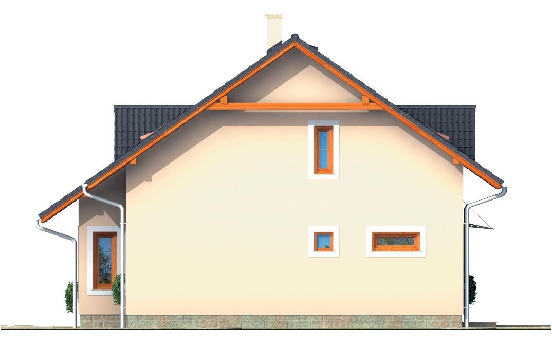 PREMIER 187 es una casa de tamaño mediano, para parcelas de anchura media. Adecuada para edificios circundantes de dos plantas. El espacio interno de esta casa satisface las necesidades de una familia de 5-6 miembros. El salón y la cocina forman un gran espacio único. Adecuada para terrenos planos y ligeramente inclinados. La casa cuenta con una chimenea que proporciona calefacción y, además, tiene una función estética irreemplazable. Gracias a la habitación de la planta baja, puedes evitar subir escaleras.