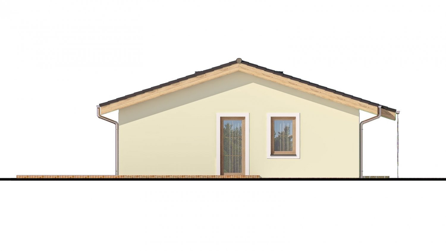 BUNGALOW 156 fait partie de la catégorie des petites maisons, pour terrains à largeur moyenne. Adapté aux bâtiments environnants à un étage. L'espace intérieur de cette maison satisfera les besoins de logement d'une famille de 4-5 personnes. Le salon et la cuisine forment un seul grand espace. La conception sans barrières est adaptée aux personnes à mobilité réduite. Adapté aux terrains plats et légèrement inclinés. La maison dispose d'une cheminée qui produit de la chaleur et qui joue un rôle esthétique irremplaçable. Vous pouvez éviter de monter les escaliers grâce à la chambre au rez-de-chaussée. Adaptée à la construction mitoyenne grâce à sa forme et à sa disposition.