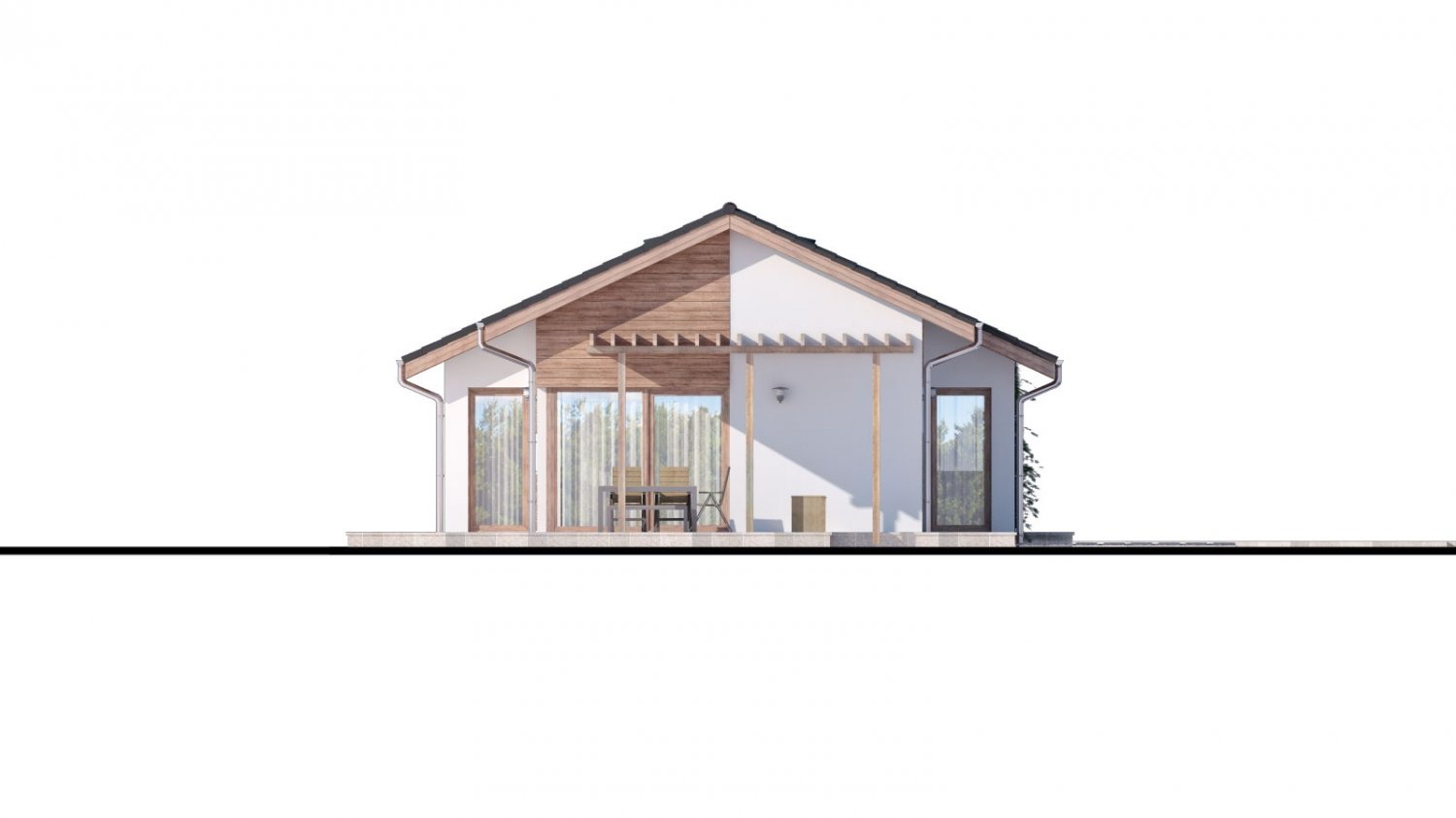 El proyecto de pequeña casa unifamiliar Bungalow 163 se puede realizar en una parcela de terreno plano o con poca pendiente. Esta casa de 3 habitaciones encaja muy bien en un barrio de casas bajas. El lugar de estacionamiento puede estar situado cerca de la casa.