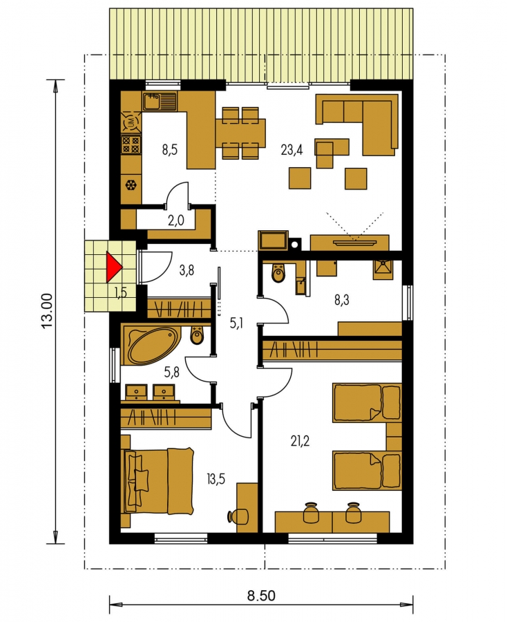 | Surface (au sol) utile au rez-de-chaussée: | 84,5m2 |